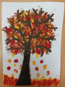 Podzim je v plném proudu, stromy opadávají, listí poletuje a válí se na zemi.