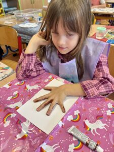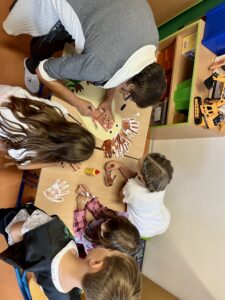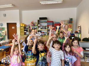 Naše třída si užila krásné podzimní tvoření, při kterém jsme společně vytvořili ježka z obtisků dlaní. Každé dítě přispělo svou „tlapičkou“ a společně tak vzniklo veselé a originální dílo.