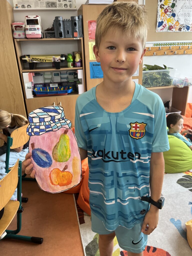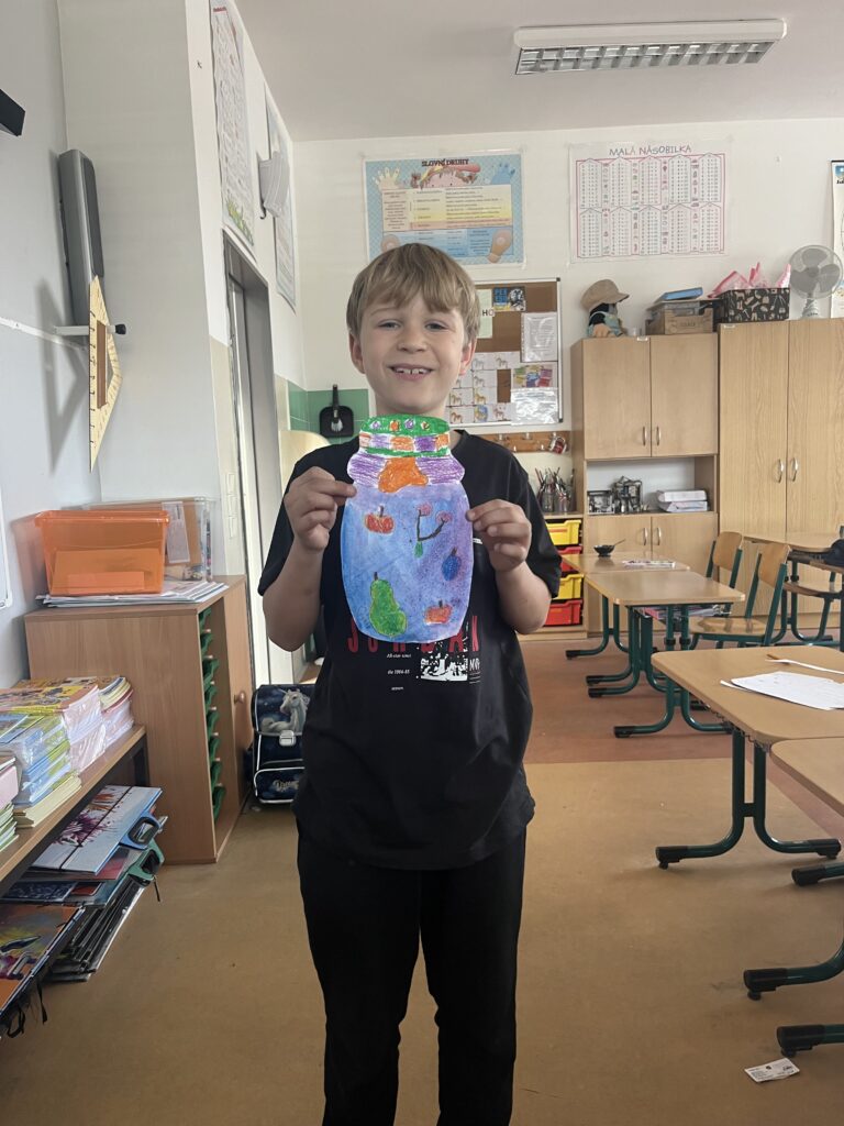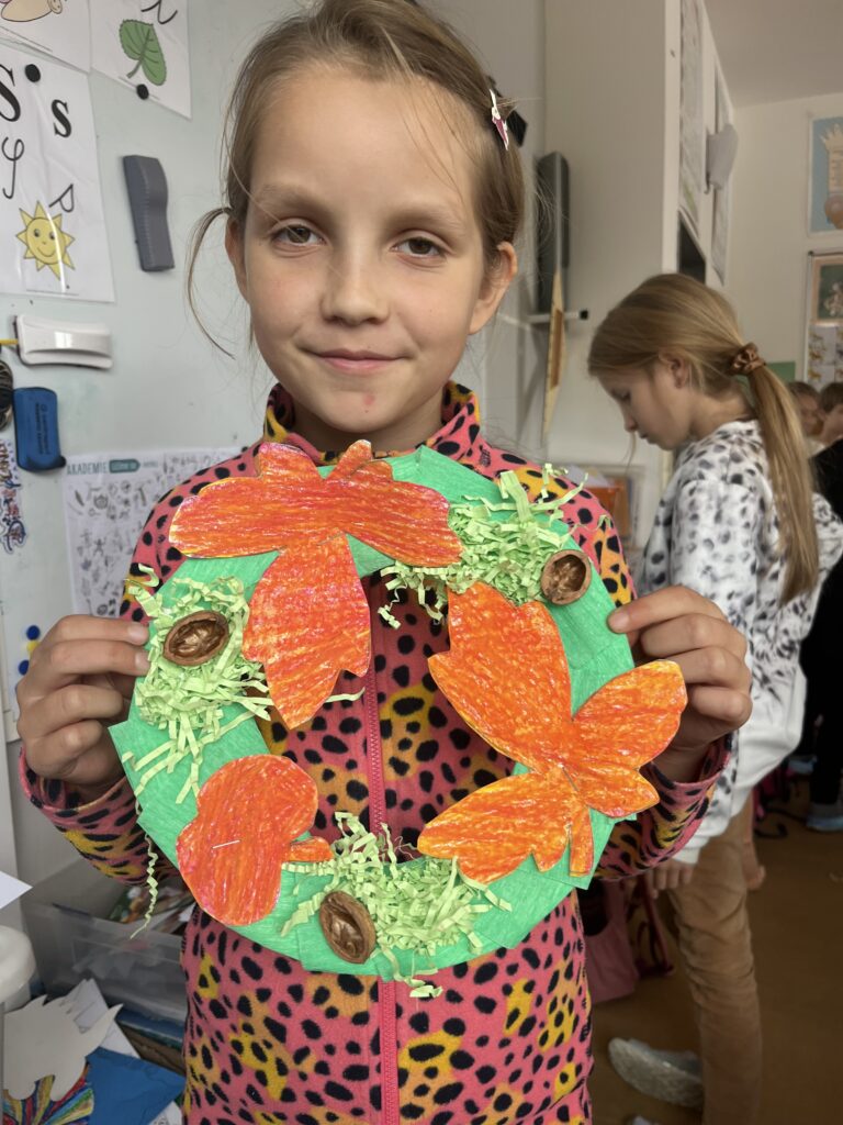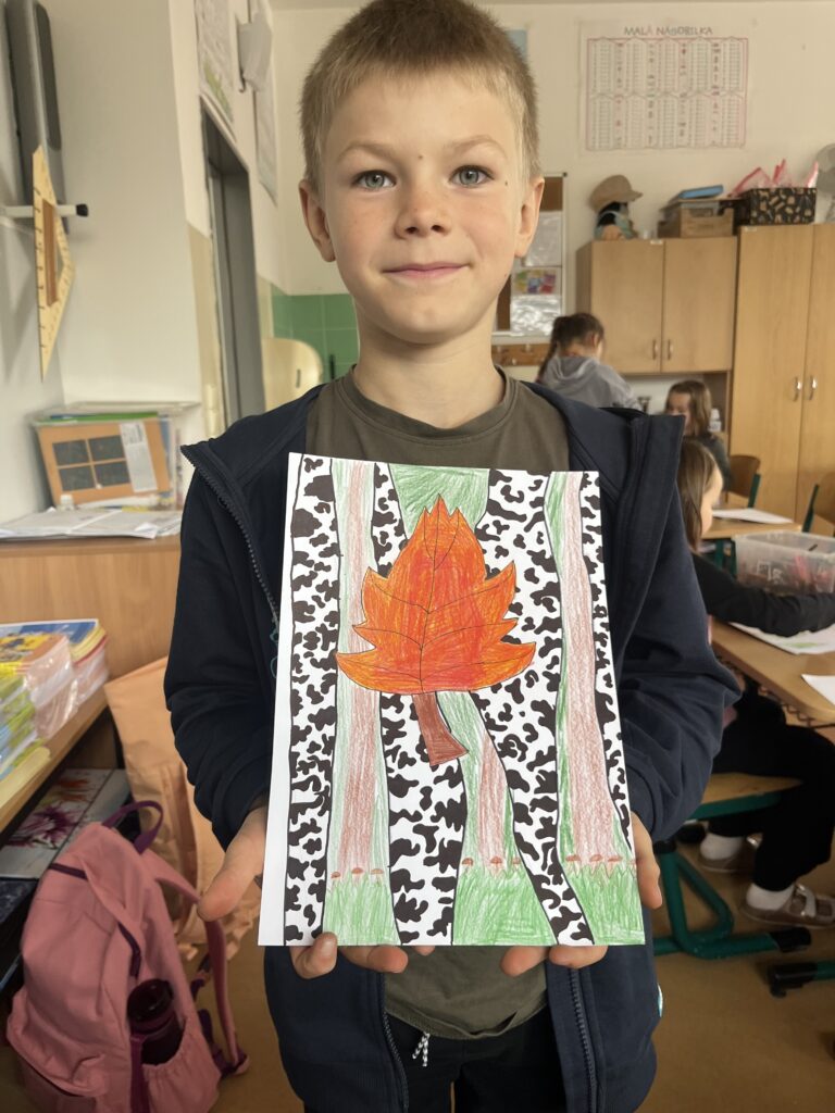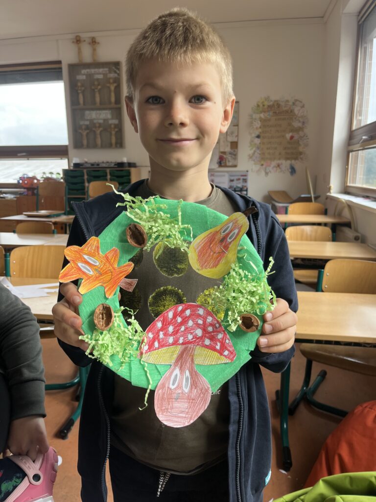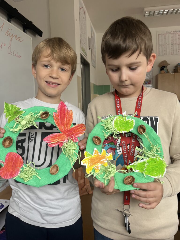 Během října jsme vyráběli podzimní výrobky. Děti nejvíce bavilo kreslit podzimní krajinu technikou Zentangle. Vyrobili jsme podzimní záložky, tvořili jsme houby z papíru a domů si děti odnesly podzimní věneček. Děti pracovaly s olejovými pastely, zkoušely je kombinovat s vodovými barvami, vznikly tak obrázky na téma zavařené ovoce a zelenina. Nakonec si děti nakreslily dýně různých tvarů a velikostí.