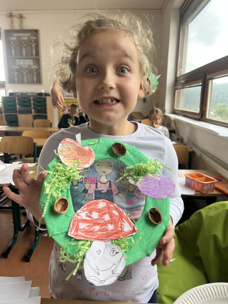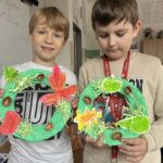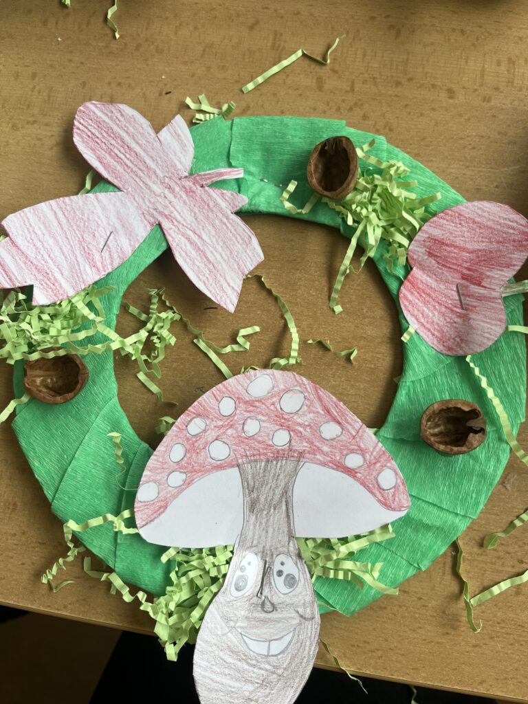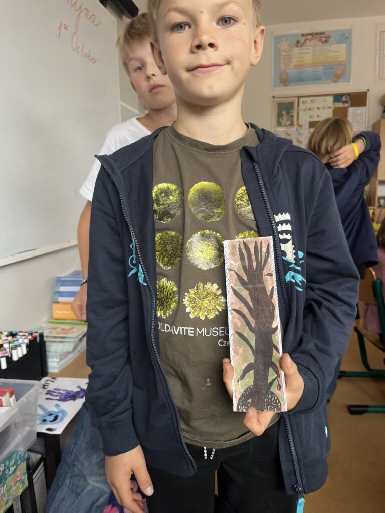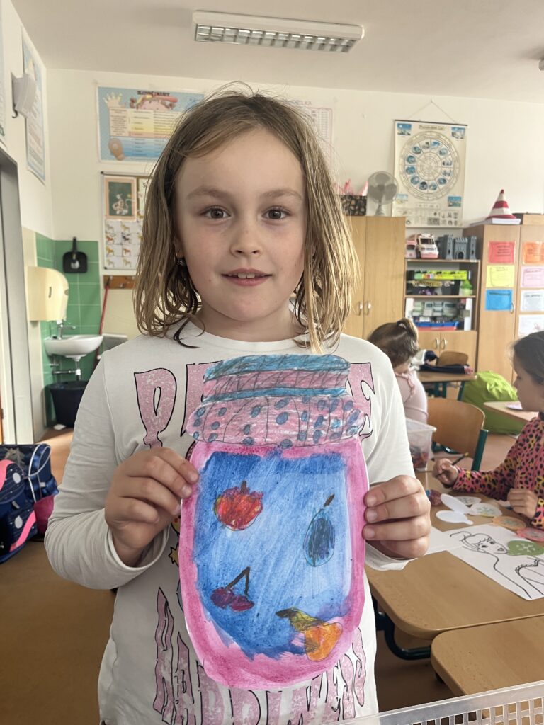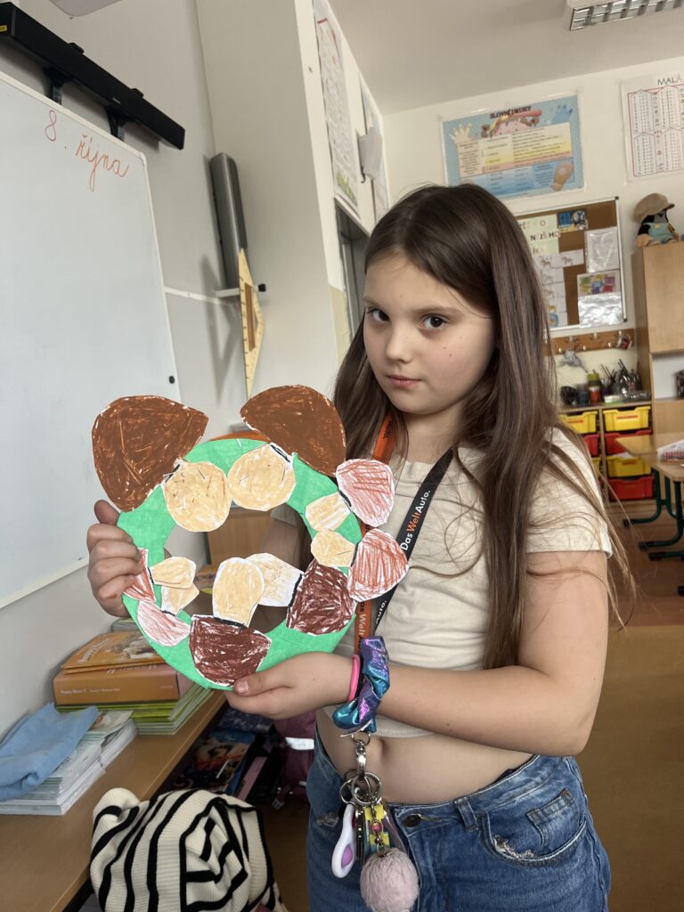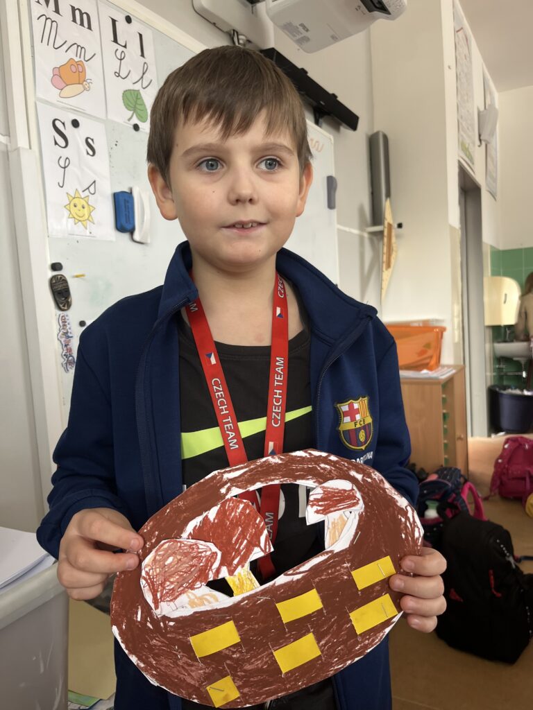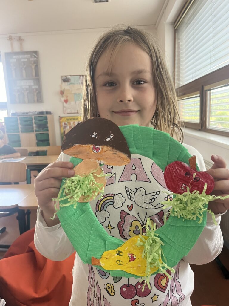 Během října jsme vyráběli podzimní výrobky. Děti nejvíce bavilo kreslit podzimní krajinu technikou Zentangle. Vyrobili jsme podzimní záložky, tvořili jsme houby z papíru a domů si děti odnesly podzimní věneček. Děti pracovaly s olejovými pastely, zkoušely je kombinovat s vodovými barvami, vznikly tak obrázky na téma zavařené ovoce a zelenina. Nakonec si děti nakreslily dýně různých tvarů a velikostí.