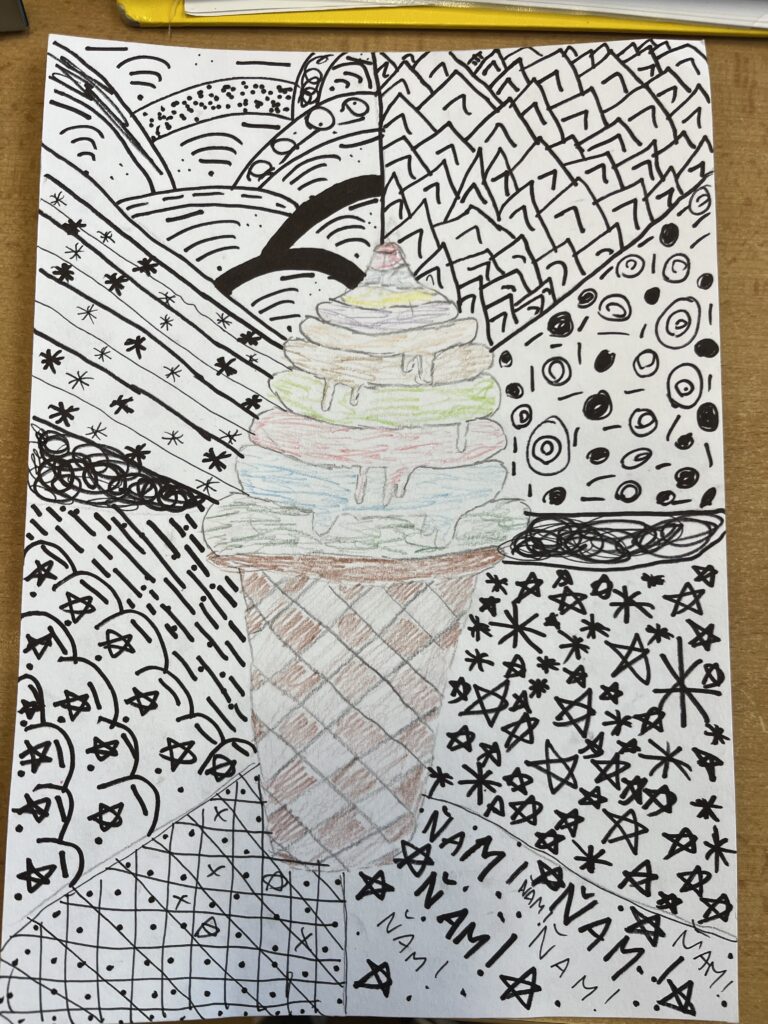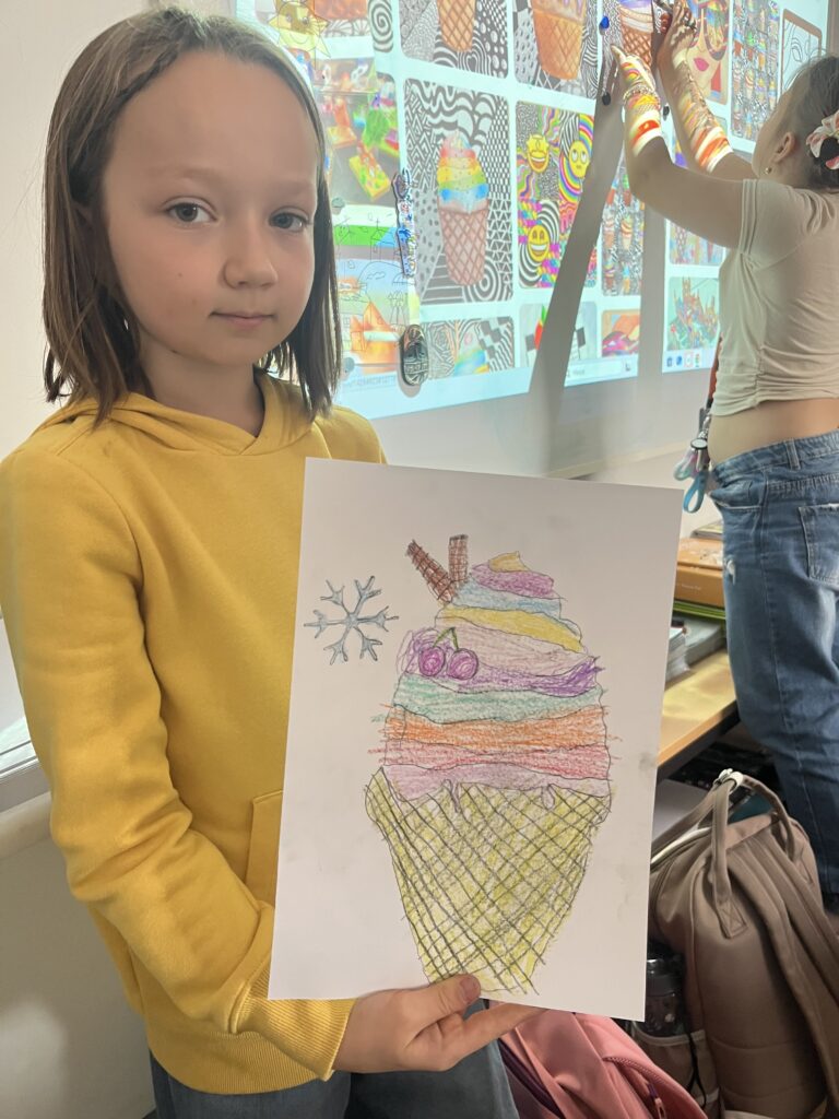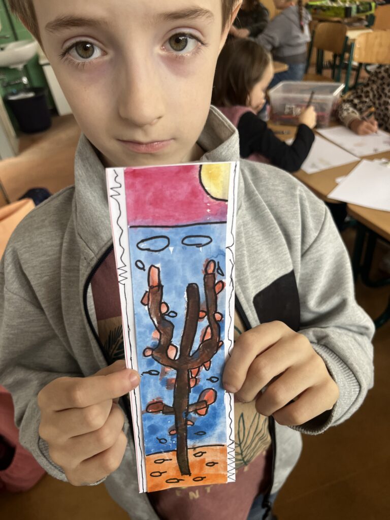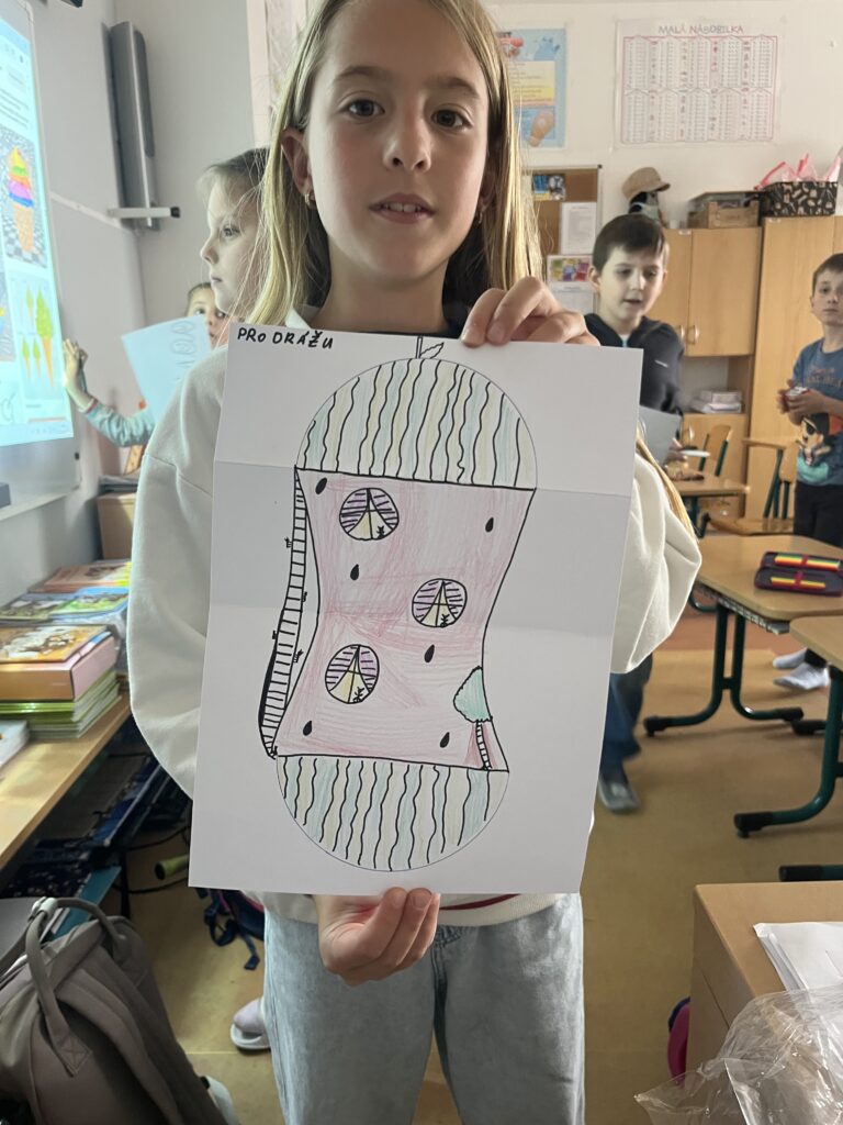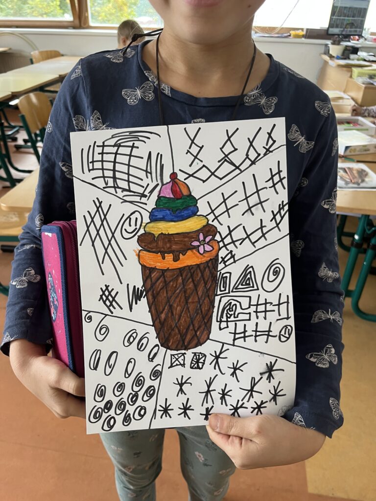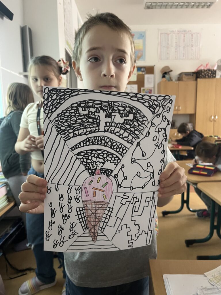 Během října jsme vyráběli podzimní výrobky. Děti nejvíce bavilo kreslit podzimní krajinu technikou Zentangle. Vyrobili jsme podzimní záložky, tvořili jsme houby z papíru a domů si děti odnesly podzimní věneček. Děti pracovaly s olejovými pastely, zkoušely je kombinovat s vodovými barvami, vznikly tak obrázky na téma zavařené ovoce a zelenina. Nakonec si děti nakreslily dýně různých tvarů a velikostí.
