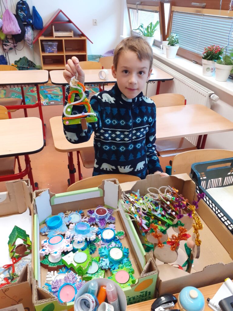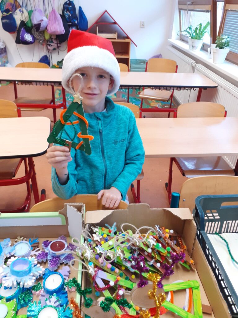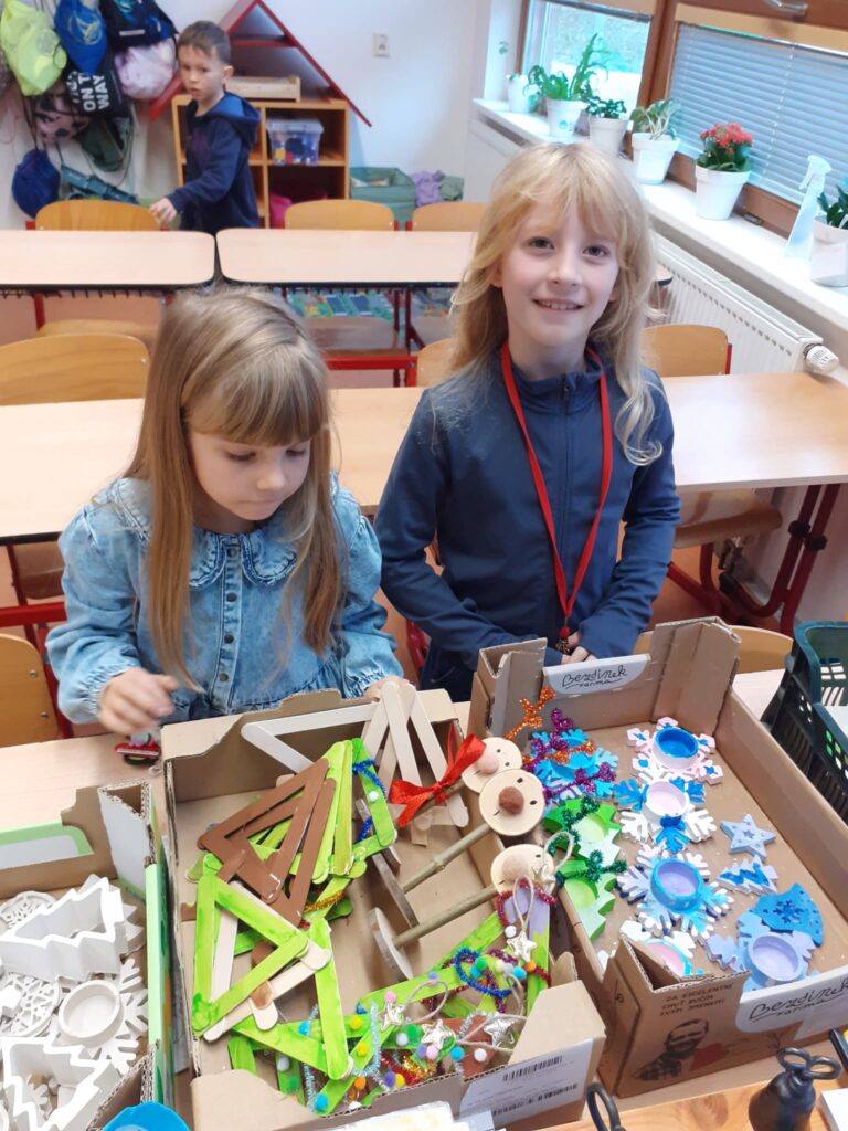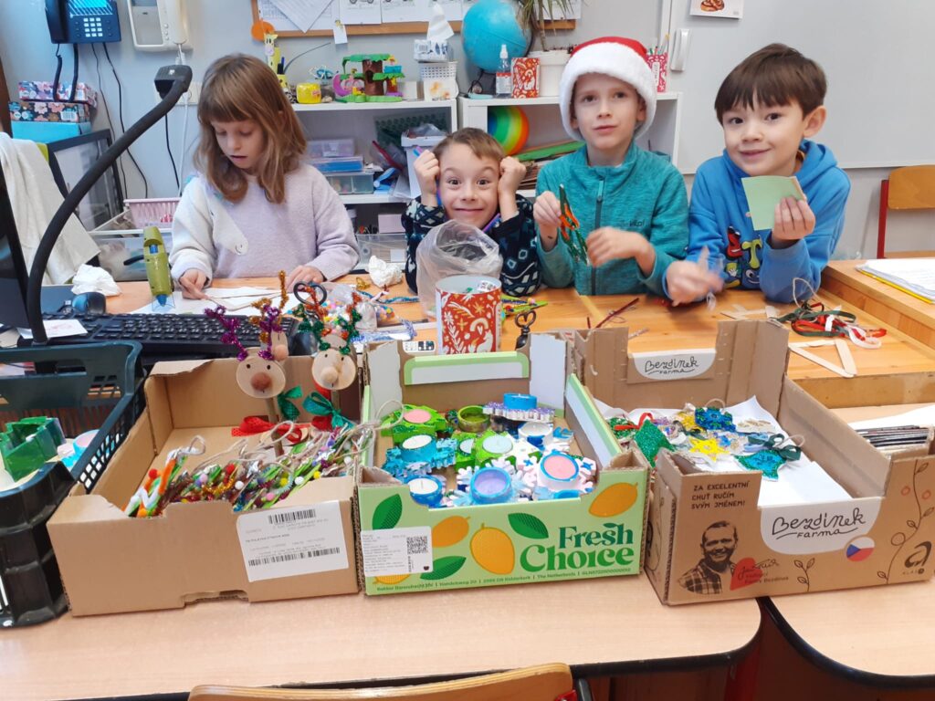 V listopadu jsme začali vyráběli dárečky a dekorace na Mikulášské trhy, které se konají 6. 12. 2025 na Vráži. Jako každý rok budeme mít s družinou na trzích stánek, kde budeme naše výrobky prodávat. Výtěžek z akce bude věnován na dobročinné účely a školní sociální fond.