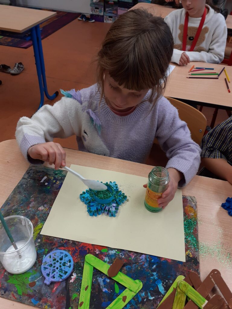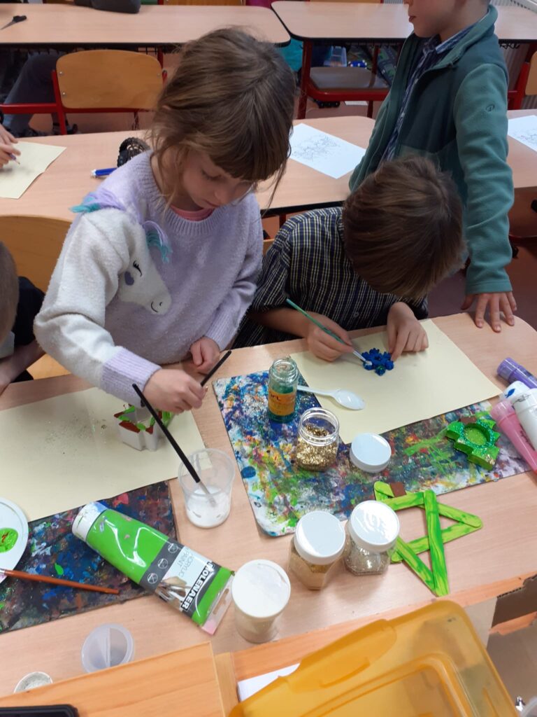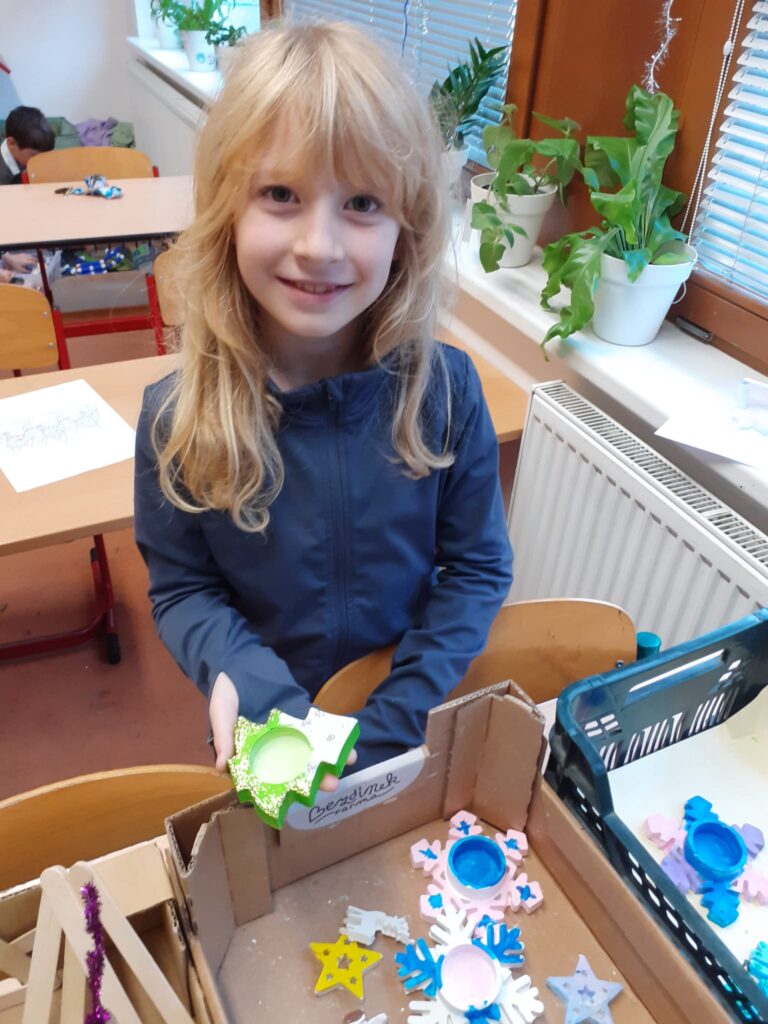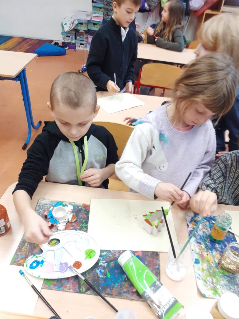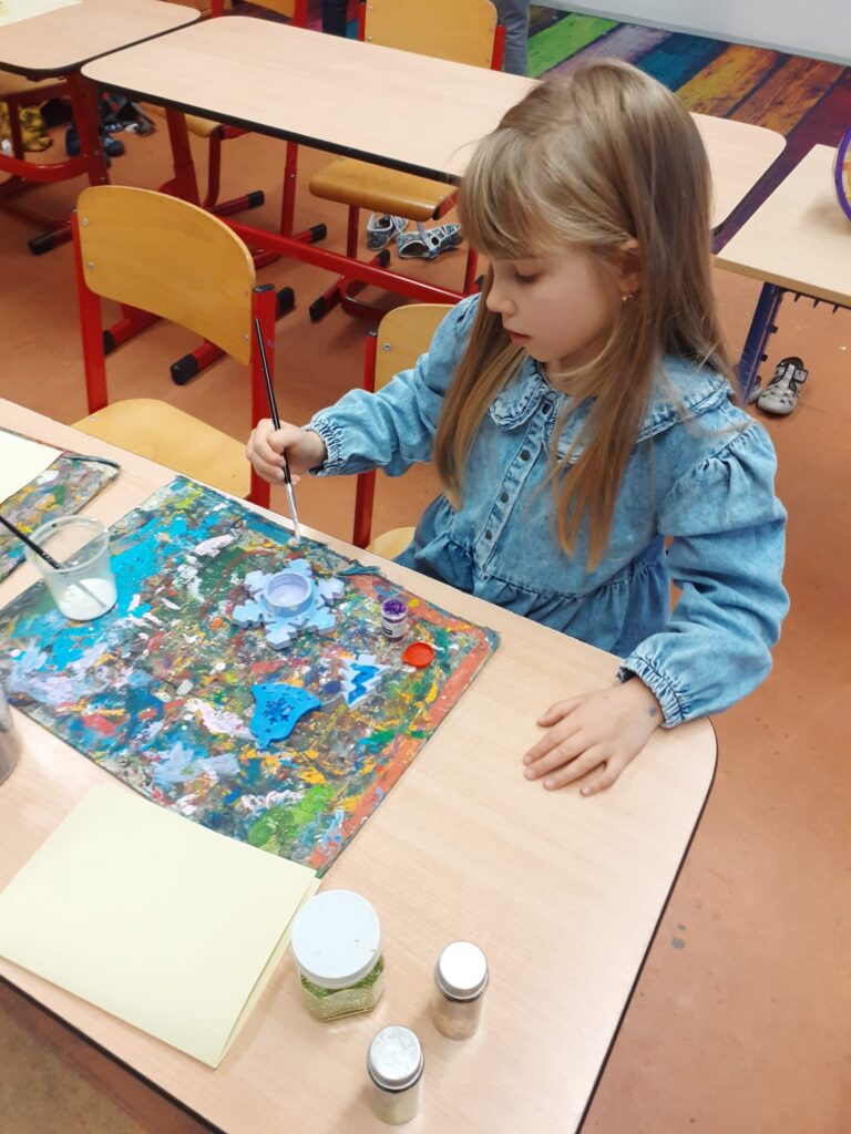 V listopadu jsme začali vyráběli dárečky a dekorace na Mikulášské trhy, které se konají 6. 12. 2025 na Vráži. Jako každý rok budeme mít s družinou na trzích stánek, kde budeme naše výrobky prodávat. Výtěžek z akce bude věnován na dobročinné účely a školní sociální fond.