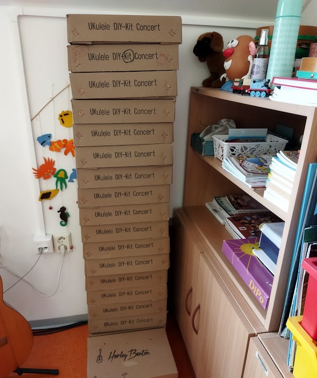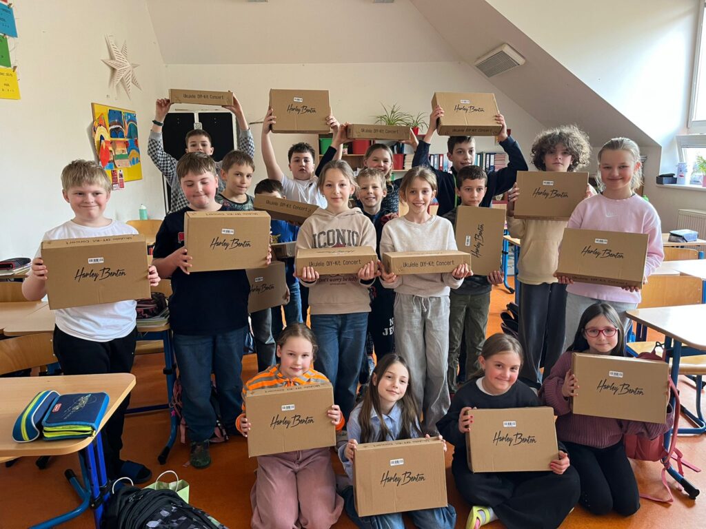 Máme rádi hudbu, a tak jsme se rozhodli zažít skvělý projekt s ukulele. Projekt Převesele s ukulele spočívá v podpoře nadání a talentu žáků naší školy. V prvé řadě jsem objednala u německé firmy stavebnice tohoto hudebního nástroje pro celou naši třídu. Nejdříve bude potřeba si své ukulele vyzdobit a proto jsme si ve výtvarné výchově nejdříve zkusili náš námět namalovat na čtvrtku. Při malování jsme si zároveň zopakovali míchání barev. V průběhu dalšího týdne pojedu nakoupit akrylové barvy a bezbarvý lak ve spreji. V pátek budeme naše ukulele již zdobit opravdově, tak nám držte palce.