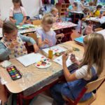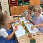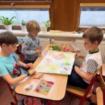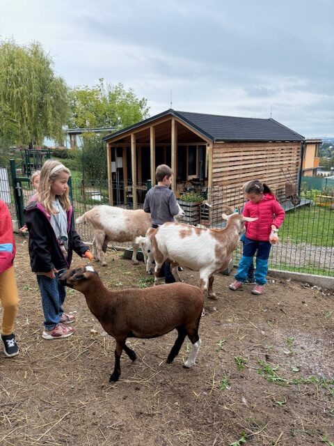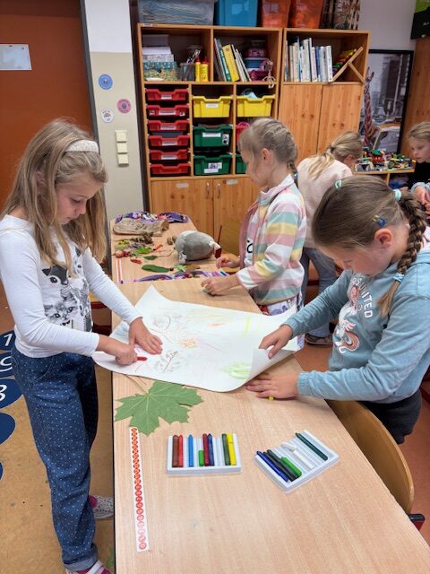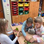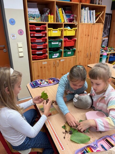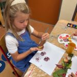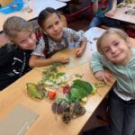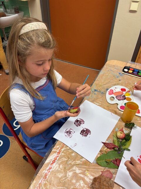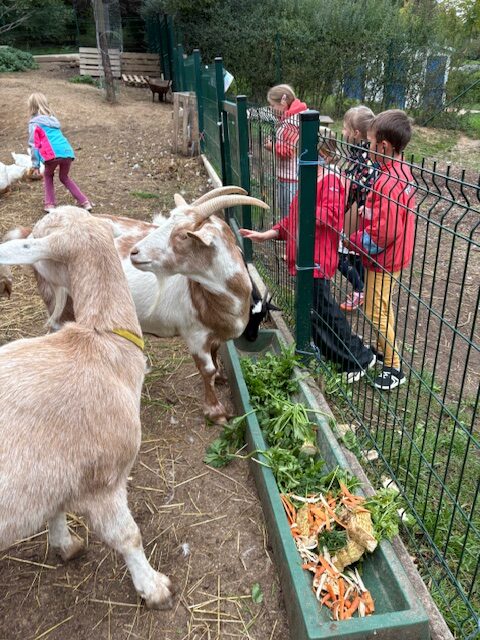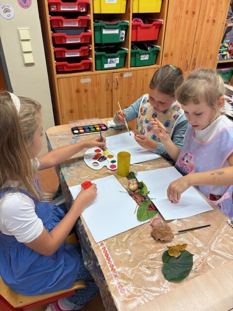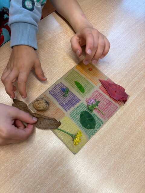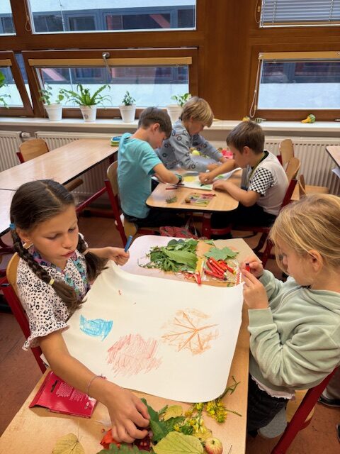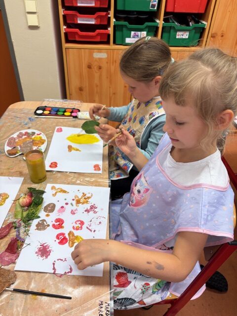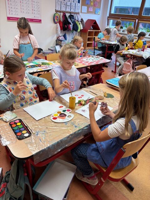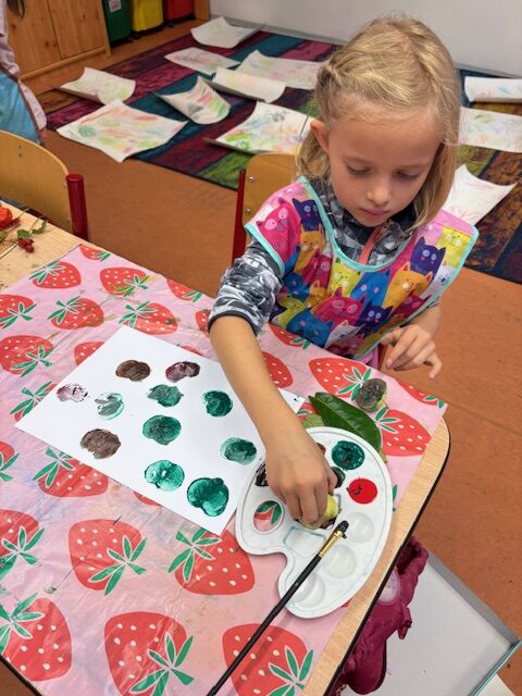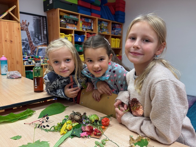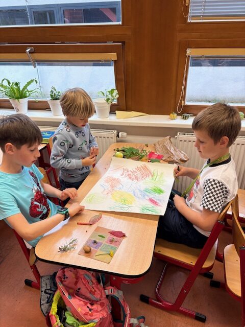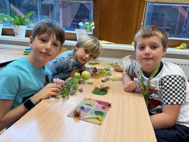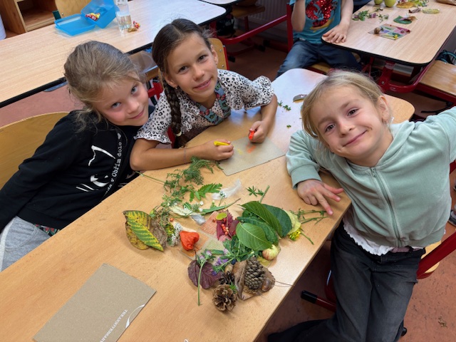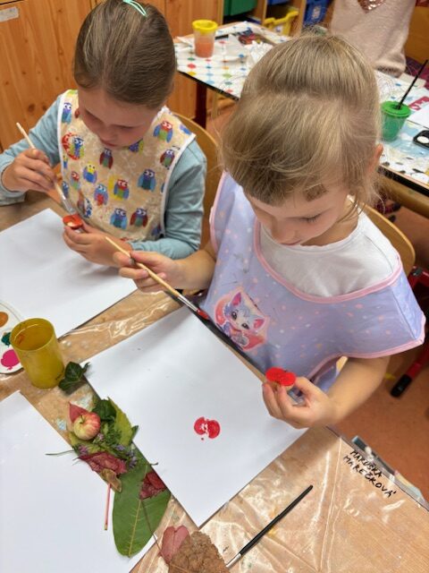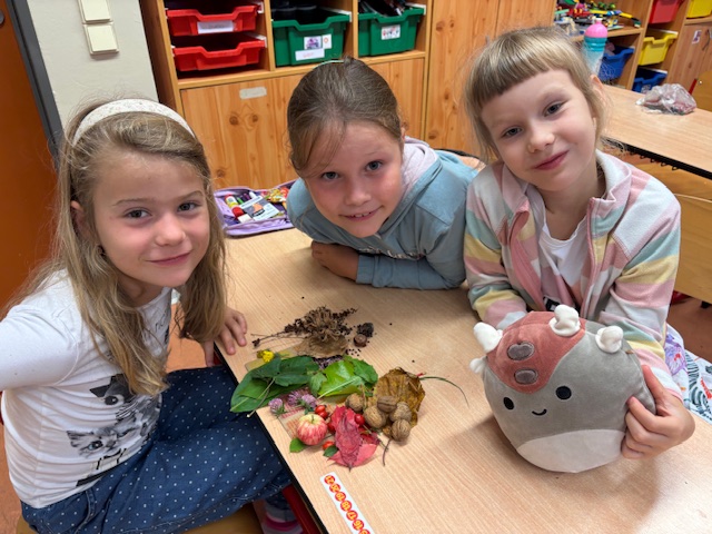 Příchod podzimu jsme oslavili společně venku. Děti se s nadšením pustily do sbírání přírodnin dle barevné palety tohoto kouzelného období. Ty se pak staly součástí našich výtvarných pokusů. Vyzkoušeli jsme si techniku frotáže i obtiskování. Nezapomněli jsme také navštívit školní farmu. Celý den jsme si krásně užili – tvořením i společnými zážitky venku s kamarády.