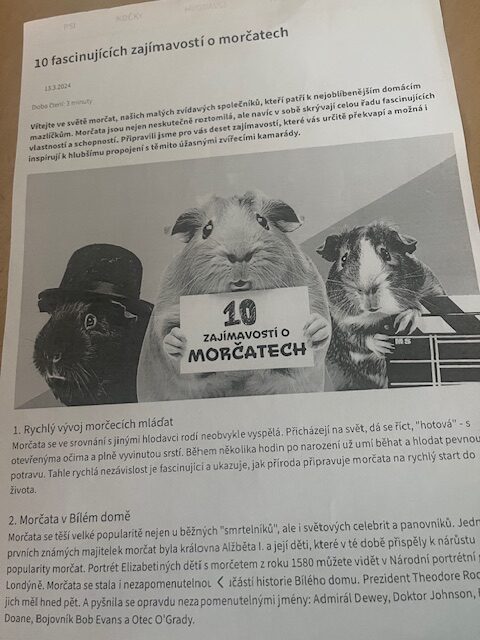 Já jsem po té jejich přednášku pouze doplnila krátkým dokumentem k vybranému zvířátku.