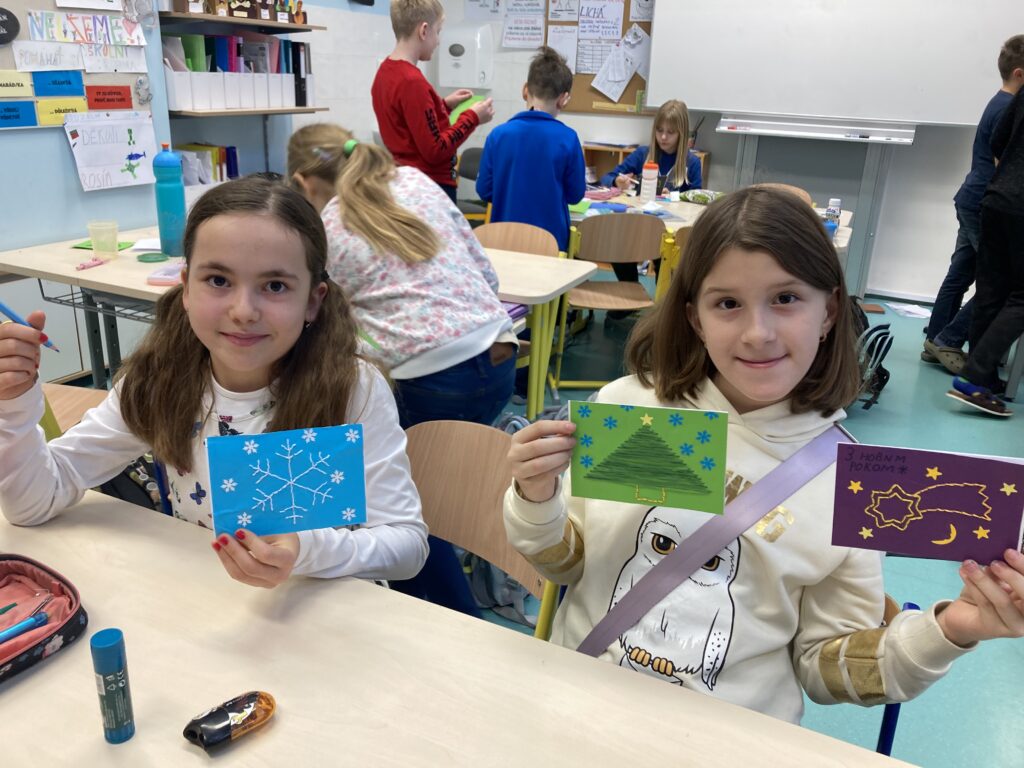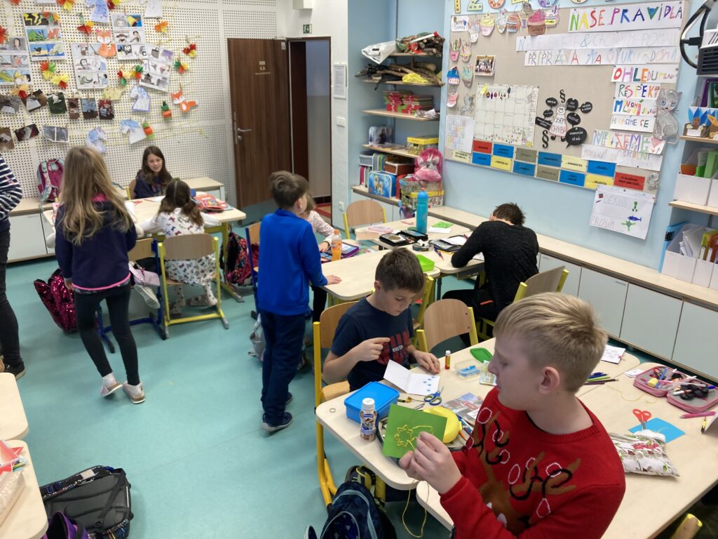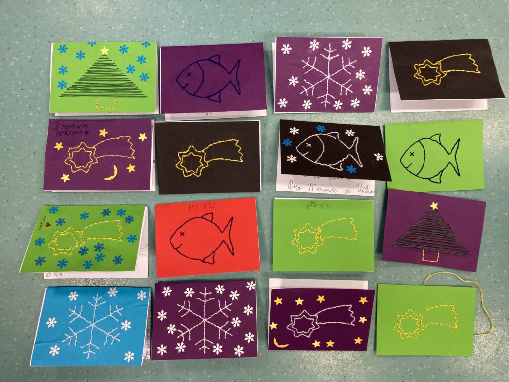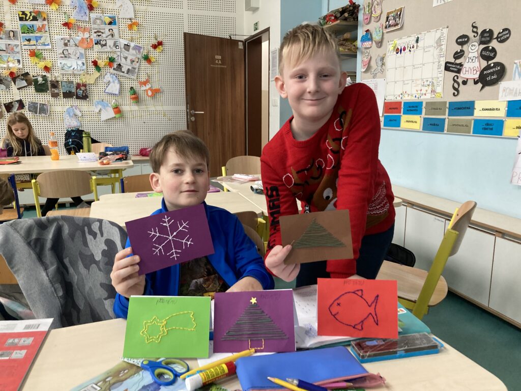 Tuto hodinu sledovalo více než 100 učitelů. - Ve čtvrtek a pátek jsme se věnovali výrobě vánočních přání.