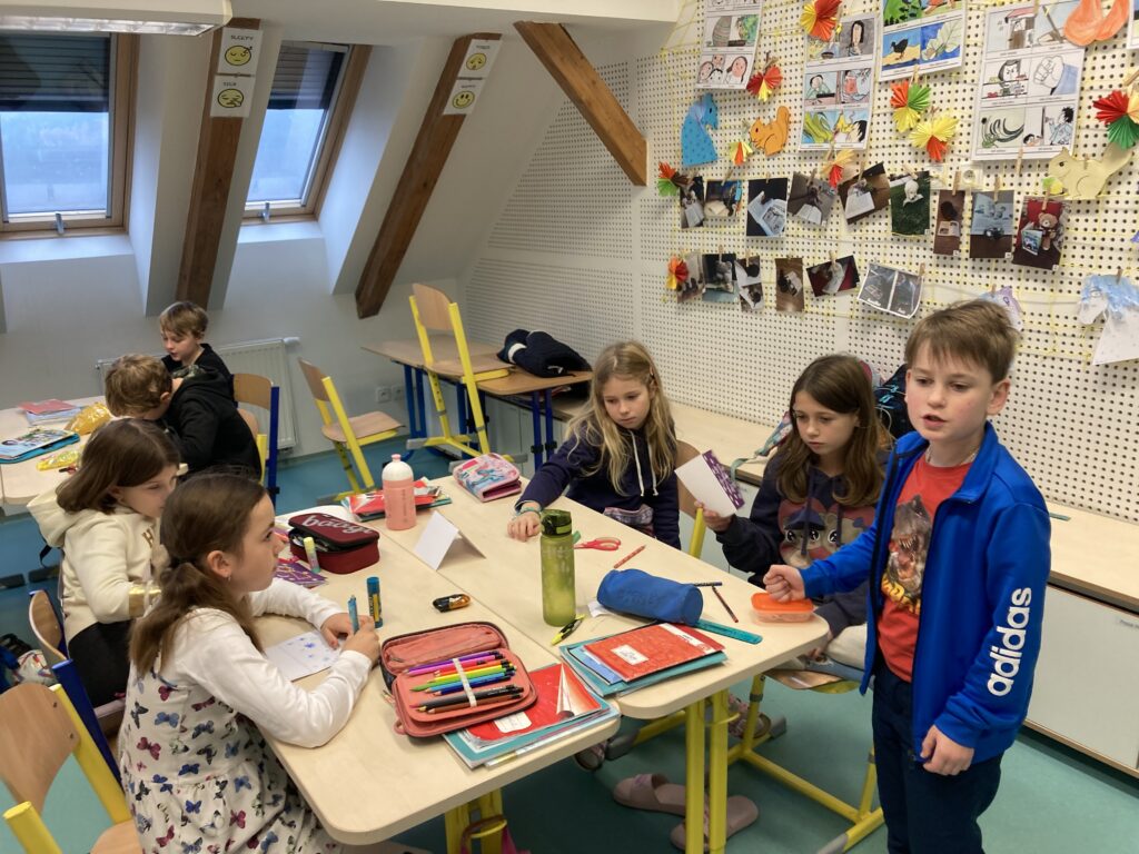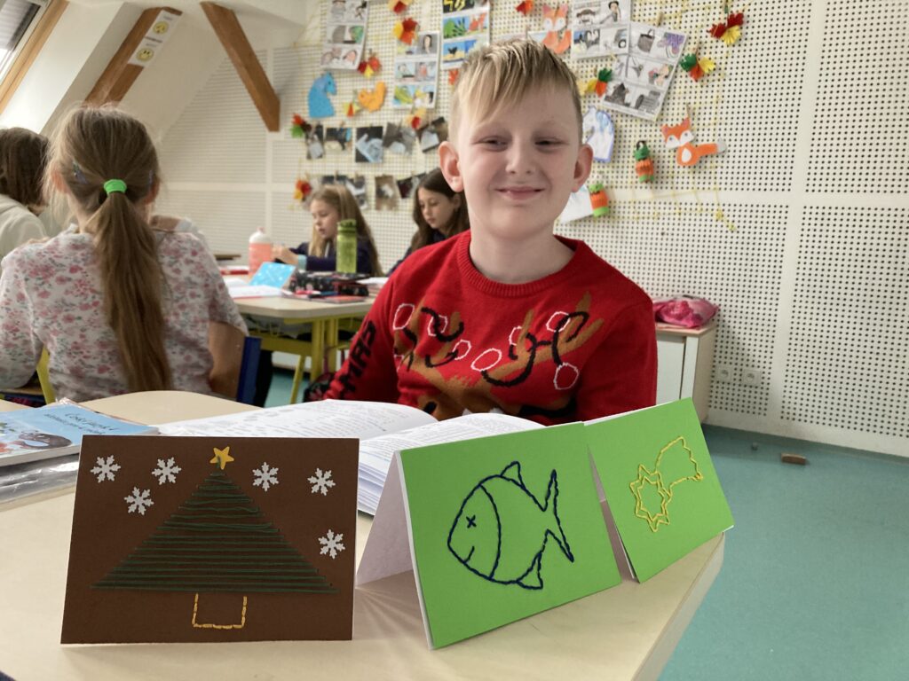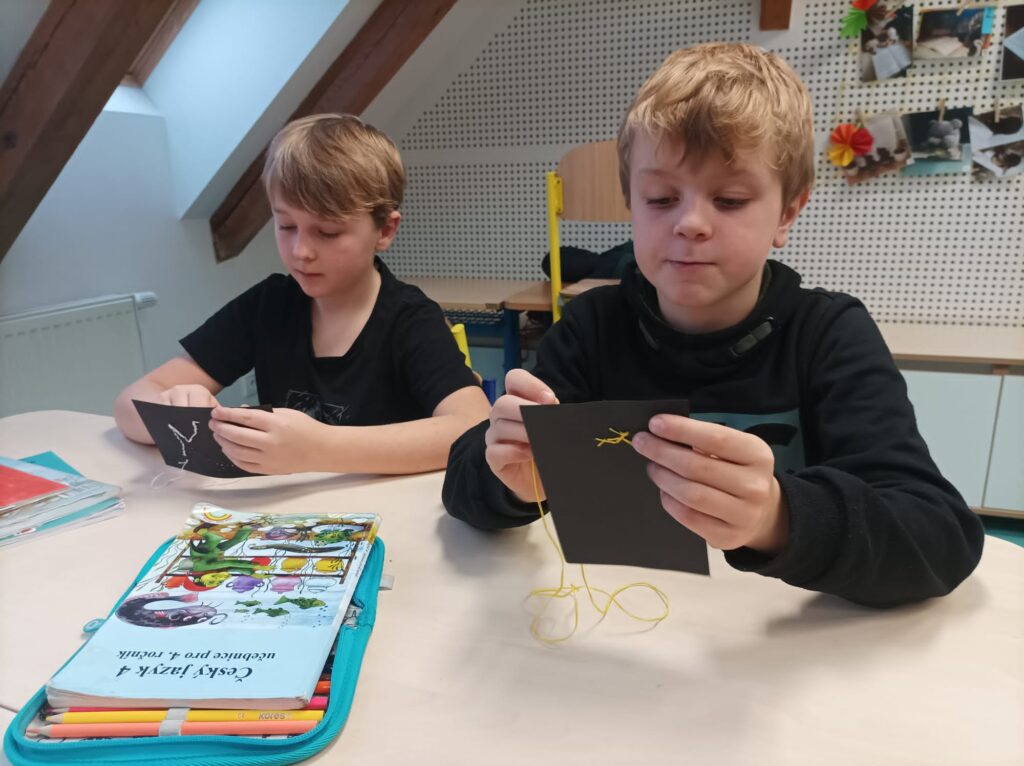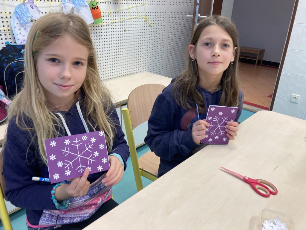 Tuto hodinu sledovalo více než 100 učitelů. - Ve čtvrtek a pátek jsme se věnovali výrobě vánočních přání.