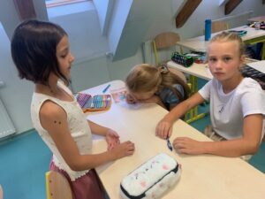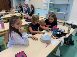 První školní týden jsme si moc užili. 1. září jsme se seznámili s naší novou třídou. Další dva dny jsme strávili s naší novou třídní paní učitelkou. Vytvořili jsme společná pravidla, kterými se budeme celý školní rok řídit, což jsme stvrdili svými podpisy. Nejprve jsme na jejich vymýšlení pracovali v sedmi skupinkách a pak jsme výsledky své práce představili ostatním. Nejtěžší bylo se nakonec shodnout v celé třídě na tom, která pravidla jsou nejdůležitější, ale i s tím jsme si poradili. Naši třídu jsme vyzdobili plakátky, kde jsme každý o sobě napsali nebo nakreslili, co máme rádi. Ve čtvrtek a v pátek jsme si pak rozdali nové učebnice češtiny a matematiky a čekalo nás běhací opakování toho, co jsme se naučili minulý rok. Krásné počasí koncem týdne nás dvakrát vylákalo ven, kde jsme si vyprávěli o prázdninách a povídali si o tom, čeho se tento školní rok bojíme a na co se těšíme.