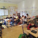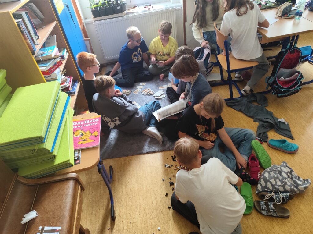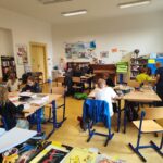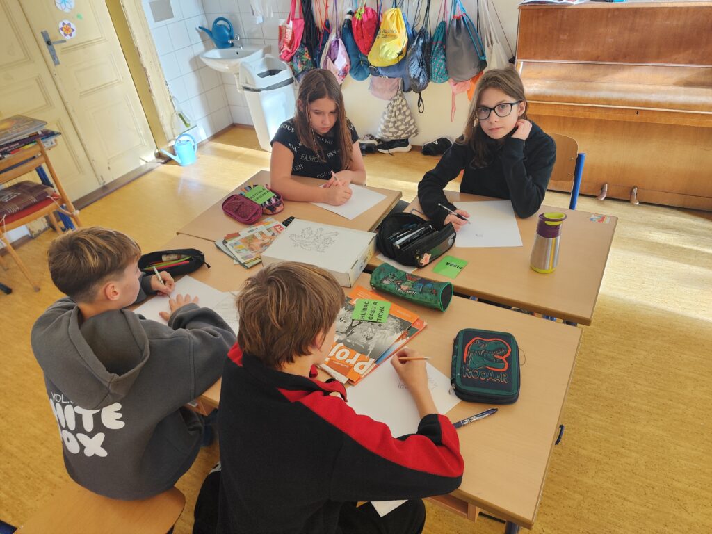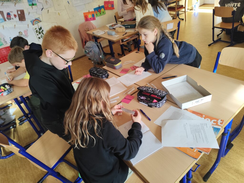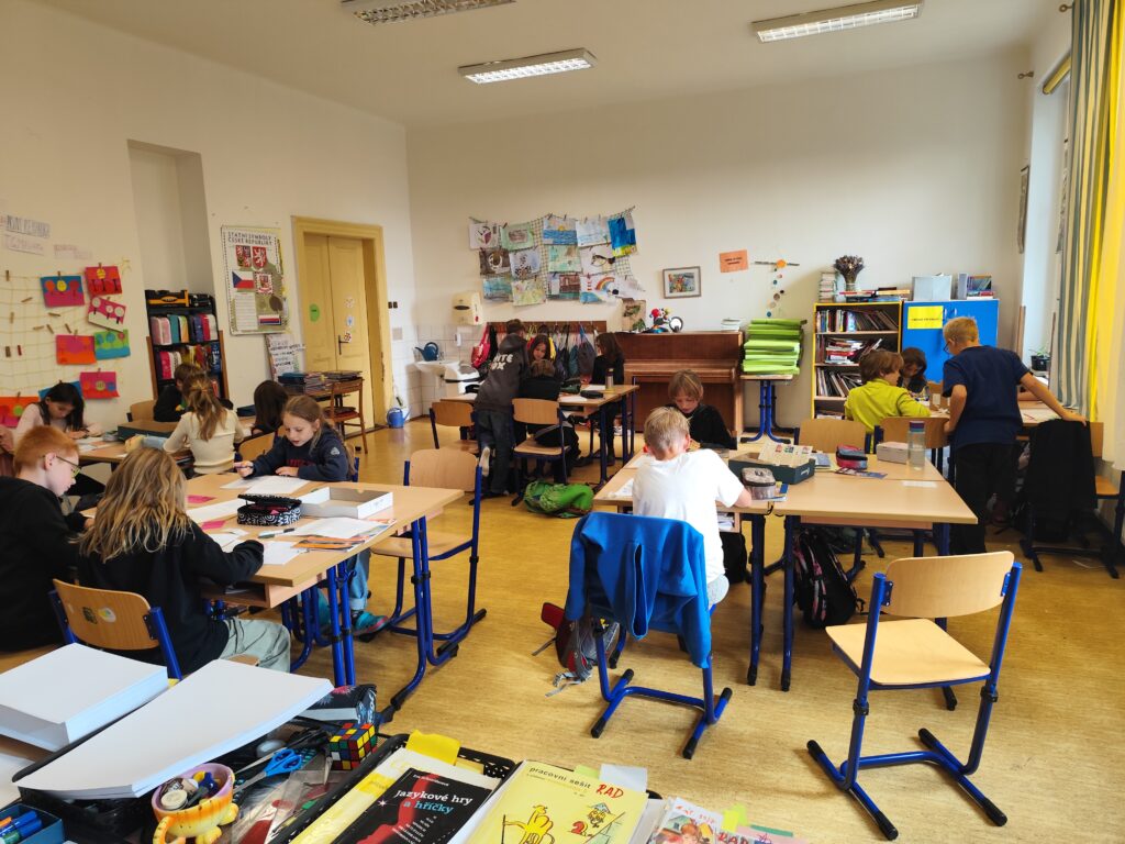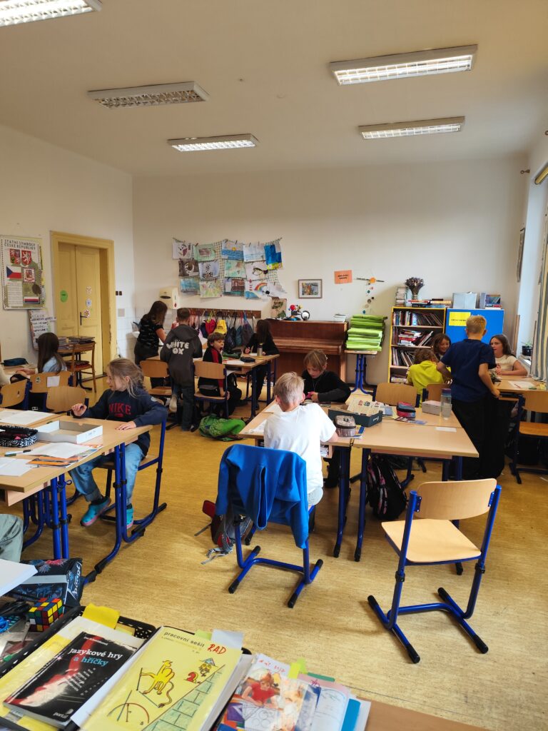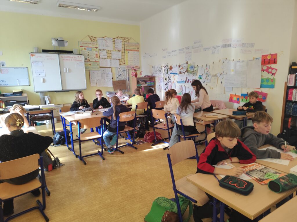 Výlet do Národního technického muzea se velmi povedl. Chování dětí bylo bez problémů. Získané informace jsme zpracovali do myšlenkové mapy a využijeme je ještě ve vlastivědě. Proběhl týden, kdy jsme opět pracovali v centrech na téma Tradice a symboly. Všichni se dobře zapojili a v rámci svých schopností spolupracovali. Více se jim dařilo mluvit tichým hlasem. Na škole máme novou paní psycholožku, která s dětmi pracovala v komunitním kruhu, kdy se vzájemně poznávali. Děti i rodiče mají možnost se na ni v případě potřeby obrátit. V rámci etické výchovy si vysvětlujeme, co je to respekt a děti se snaží pravidlo Ke každému se chováme s respektem dodržovat. Samozřejmě nastávají situace, kdy si znovu pravidlo připomínáme. Vše řešíme ihned domluvou. Na stránkách třídy máme probírané učivo a plánované testy. V listopadu nás čeká první bruslení. Ve čtvrtek před prázdninami proběhla na Komendě akce Strašidelná seznamka, ve které si páťáci – velitelé vyzkoušeli, jaké je to mít na starosti mladší spolužáky.