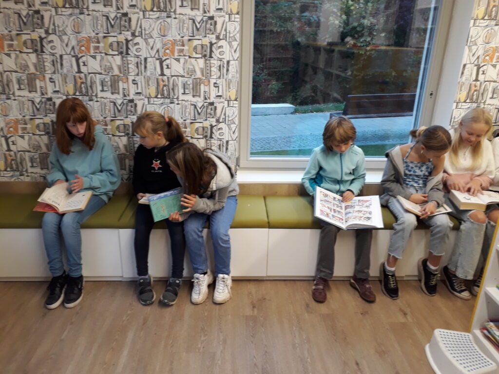 Každý týden ve středu máme v rámci českého jazyka čtenářskou dílnu. Nosíme si vlastní knihu, čteme si z ní a sdílíme zážitky z četby s ostatními. Kdo si knihu zapomene, může si ji vypůjčit z naší třídní knihovničky. Přečtenou knihu prezentujeme ostatním, při prezentaci nám pomáhají čtenářské kostky. Do literárního sešitu si zapisujeme seznam přečtených knih. Učíme se o knihách mluvit, zaměřujeme se na děj, postavu a prostředí. Čtení knih nám také pomáhá při psaní příběhů v dílně psaní. Nedávno jsme měli jako hosta ve čtenářské dílně naši školní knihovnici paní Petru Mierzwovou.