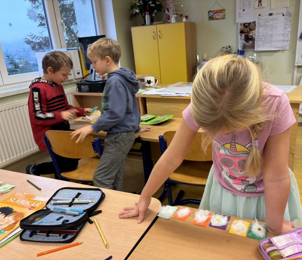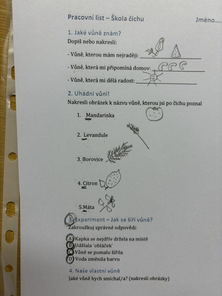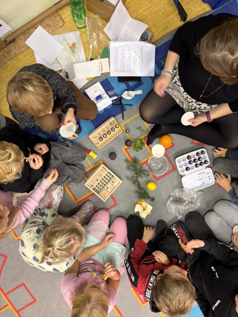 V pondělí 15. prosince nám přišla do třídy zpestřit předvávoční čas Matýskova maminka. Přinesla s sebou vzorky vůní, které jsme měli za úkol poznat. Z pokusu jsme se dozvěděli, jak se vůně šíří ve vodě a všechny nás bavilo vytváření voňavých kartiček. Dokonce jsme si namíchali vlastní vůni do inhalačních tyčinek, které jsme si, spolu s diplomem, odnesli domů. Příjemně provoněnou třídu máme do teď. Moc děkujeme paní Stollinové za krásnou dílničku. 🙂