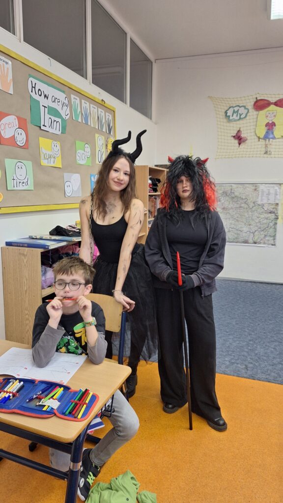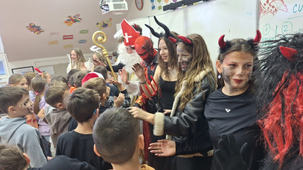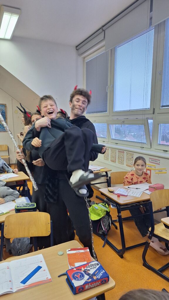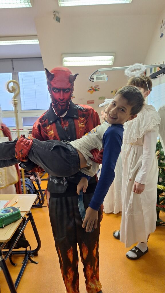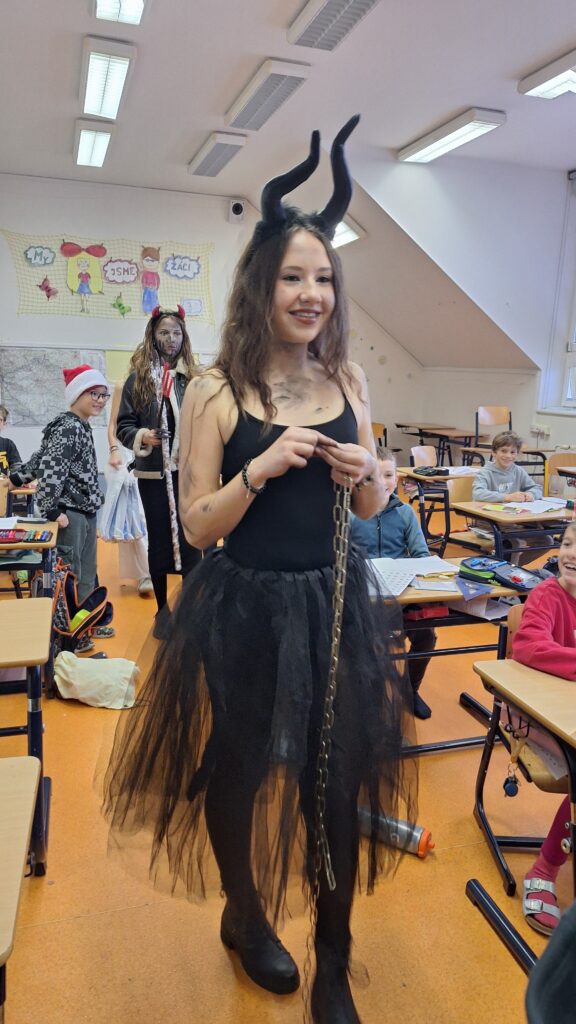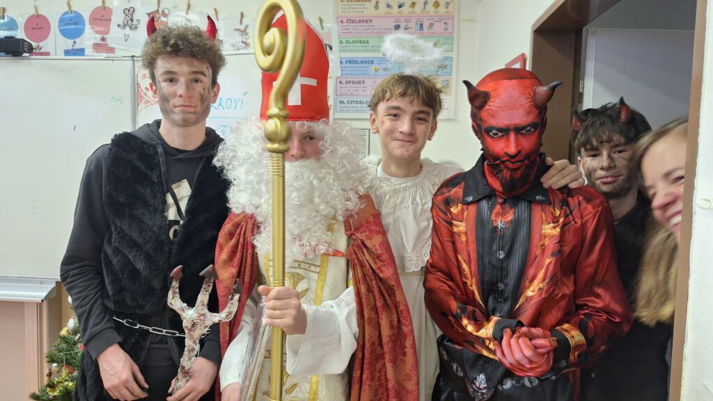 I letos školou opět chodili Mikuláš, andělé a čerti – akce, na kterou se děti moc těší celý rok. Přípravu této oblíbené tradice mají na starosti žáci 9. tříd, kteří se postarali nejen o kostýmy, ale i příjemnou atmosféru v celé škole.
