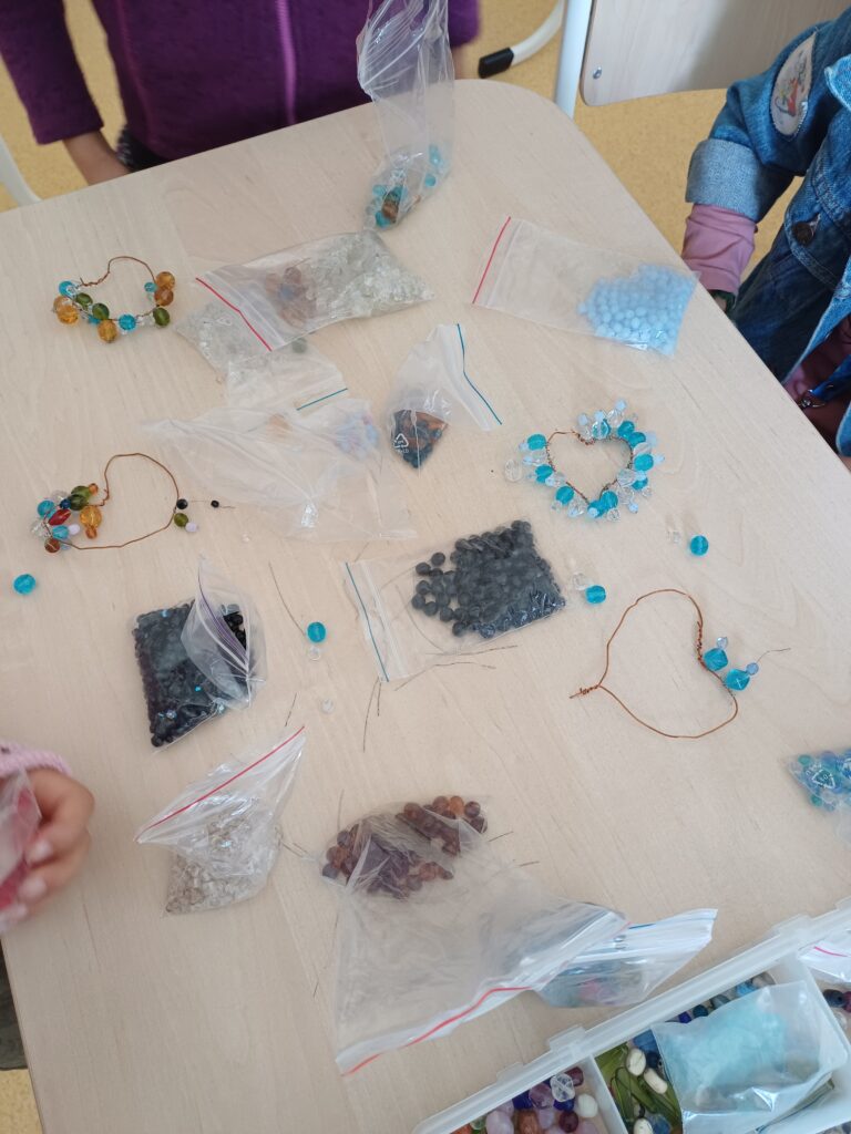 Naše Slůňata jsou velmi šikovná, a tak jsme se pustili do kreativních dílen. Začali jsme výrobou panenek z filců, provázků a korálků. Pokračovali jsme výrobou srdíček z drátků a skleněných korálků, každé ze srdíček je originál a odráží fantazii svého tvůrce.