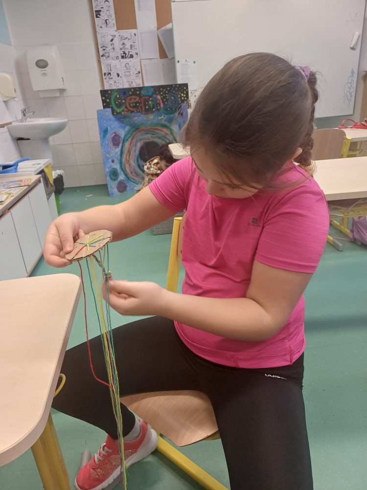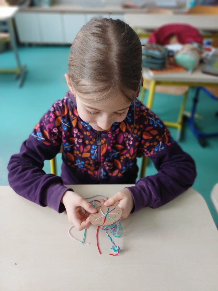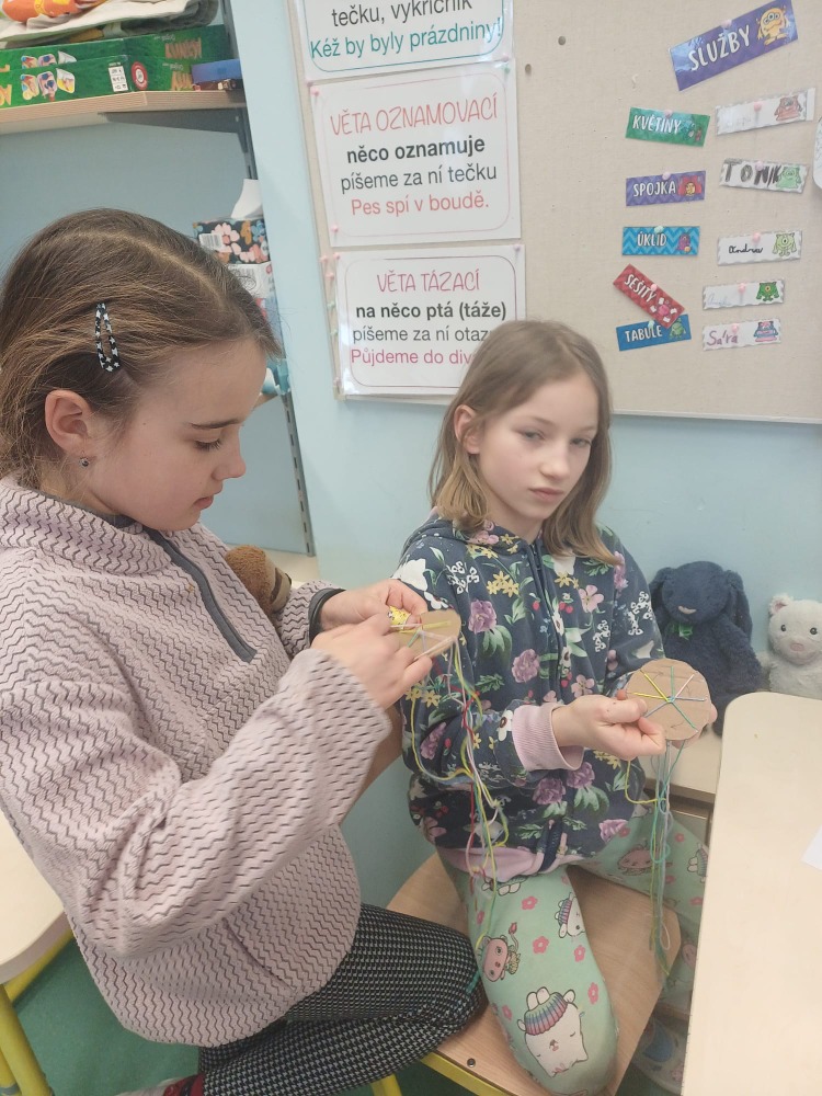 Paní vychovatelka připravuje pro děti pestrý a tvořivý program, aby se ani na chvíli nenudily. Společně vyrábějí nejrůznější drobnosti – například přáníčka k Valentýnu, amulety, bavlnkové náramky a spoustu dalších originálních výrobků.