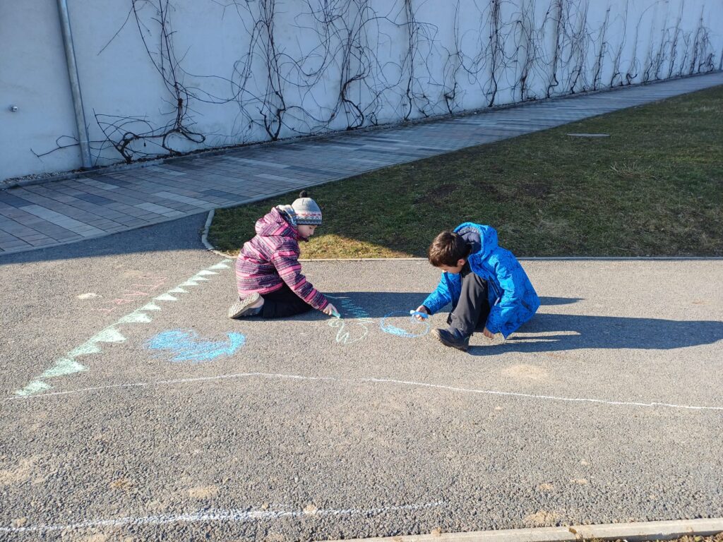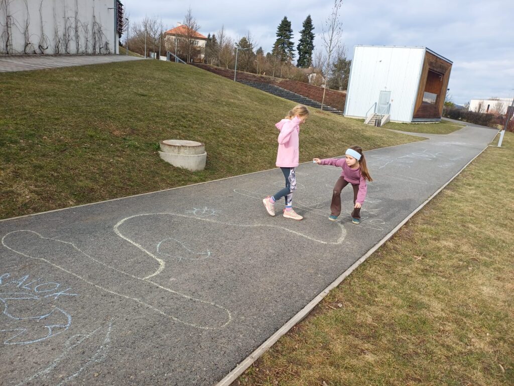 Pobyt venku probíhá odděleně, v blízkosti školy. I tam si děti dokážou čas krásně užít – vymýšlejí si překážkové dráhy, soutěží, hrají pohybové hry a užívají si čerstvý vzduch. Karanténa se tak proměnila spíše v komornější družinové dobrodružství.