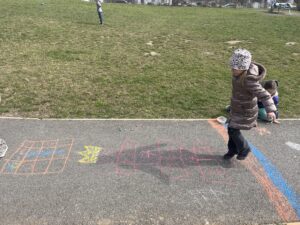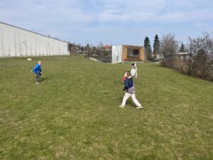 Sluníčko nám v pátek, tak krásně svítilo do třídy, že jsme prostě museli ven. 💛 Na paloučku před školou jsme vytáhli barevné křídy a chodník se hned změnil v pestrou malířskou galerii. 🎨🖍️🌈Kluci se okamžitě chopili míčů a s nadšením běhali, kopali a zkoušeli nové triky .⚽😄 Zbytek dětí kreslil, smál se a užíval si první jarní paprsky.