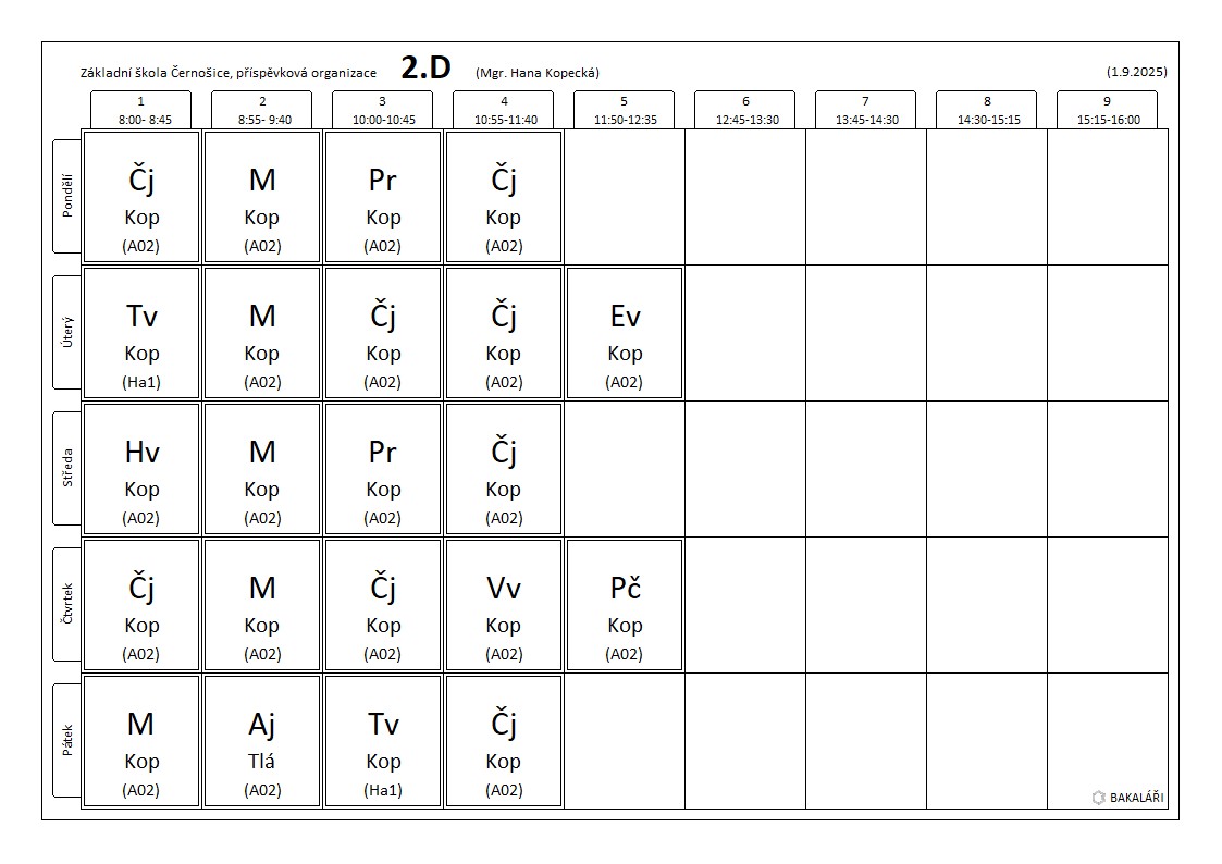 PLÁN UČIVA NA TÝDEN OD Učivo 6. 10. – 10. 10. 2025 Třída: 2. D Český jazyk Učebnice str. 15, 16, 17, 18 Pracovní sešit str. 10, 11, 12 Písanka str. 12, 13, 14 Čítanka str. 27 – 32 Matematika Učebnice str. 16, 17, 18 Pracovní sešit str. 15, 16, 17 Minutovky str. 5, 6 Anglický jazyk Prvouka Učebnice str. 18, 19 Pracovní sešit str. 17, 18 Další informace:
