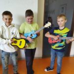 Ukulele máme nazdobená, seřízená, struny natažené a můžeme konečně začít hrát. V hudební výchově jsme měli první lekci hraní na ukulele. Nejdříve jsme se seznámili s názvy strun. Poté jsme si na své mobilní telefony nainstalovali aplikaci ladička pro ukulele nebo máme také klipové ladičky a učili jsme se tyto různé ladičky používat. Naše první hraní bylo zatím na prázdné struny a dostali jsme domácí úkol trénovat hraní pravé ruky s písničkou Zlatá brána otevřená. Už se těšíme na další hudební výchovu, kdy se naučíme hrát svůj první akord.