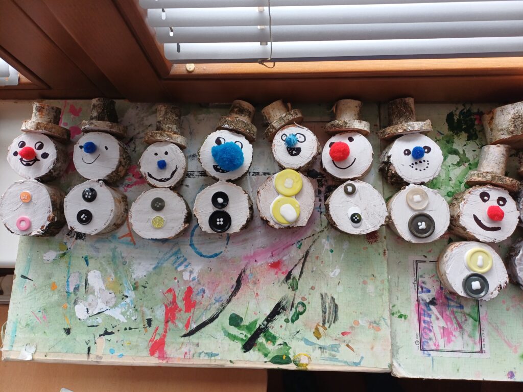 Naše oddělení veverek připravilo pro prodej na trzích veselé dřevěné sněhuláčky. Dětem se opravdu vydařili a věřím že budou všem návštěvníkům trhů líbit.
