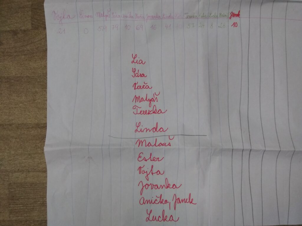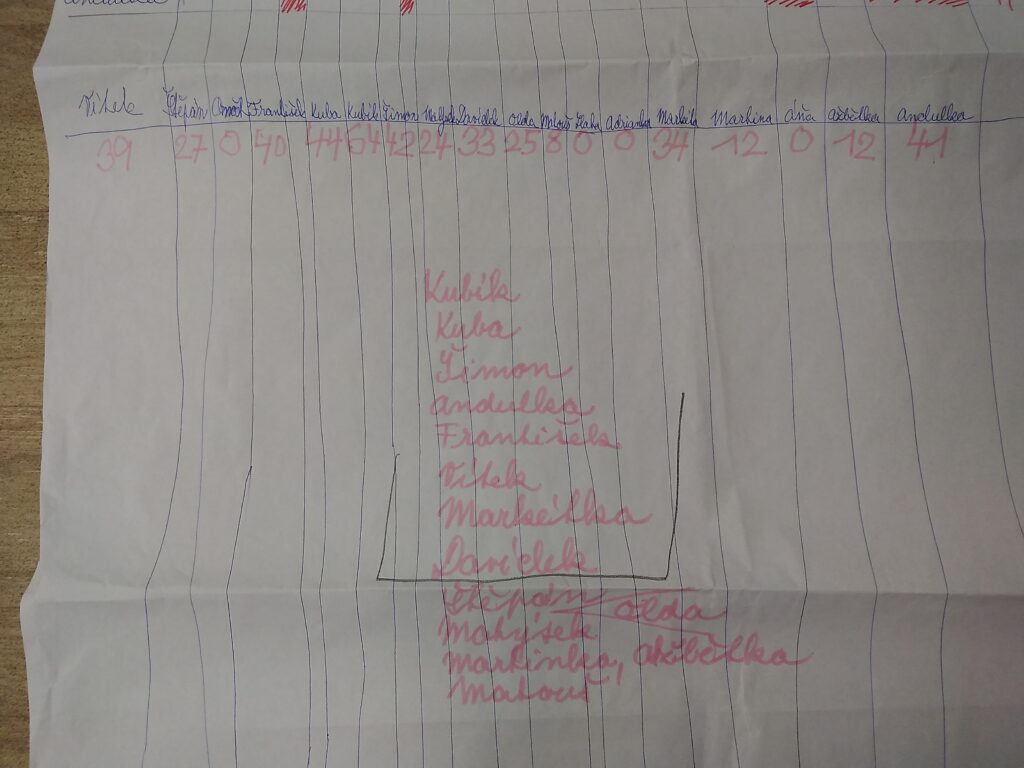 Obtížnost byla rozdělena mezi mladší ( 1.C. ) a starší ( 3.C. a 4.C. ) děti.
