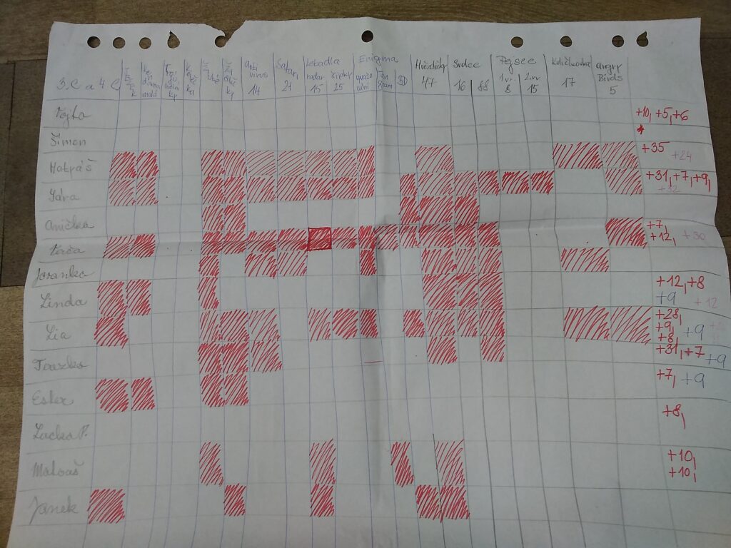 Celý týden byly hlavolamy v nabídce a bylo jen na dětech jaké chtějí vyzkoušet. Podle úspěšnosti se dětem vybarvovaly políčka.