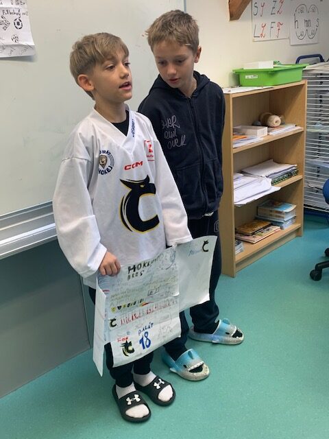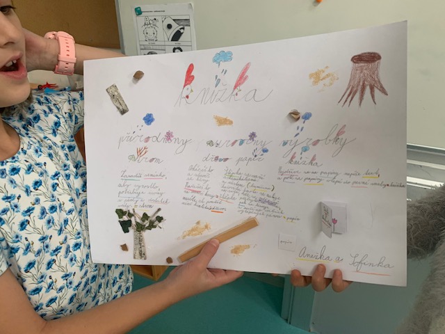 Tento týden byl ve znamení výletu, projektů i čtvrtletních prací. Největším zážitkem byla určitě návštěva pražského planetária. Ve čtvrtek jsme ho navštívili společně se třídou 3. D. Pořad měl dvě části – nejdřív jsme se zatajeným dechem sledovali výklad sympatického pana průvodce, který nám na obrovské LED kopuli ukazoval hvězdy, planety, souhvězdí a zajímavě nám o nich vyprávěl. Druhou částí pak byla kouzelná pohádka Polaris o putování tučňáka Jamese a ledního medvěda Vladimíra do vesmíru. Všichni jsme byli z návštěvy planetária nadšeni. V prvouce jsme se tento týden věnovali prezentaci našich projektů Od přírodniny k výrobku. Naším úkolem bylo popsat cestu z přírody až k hotovému výrobku. A výrobky jsme si vybrali zajímavé – fotbalový míč, houslový smyčec, knížka nebo sýr. Naše díla se moc povedla, tak jsme si je vystavili ve třídě.