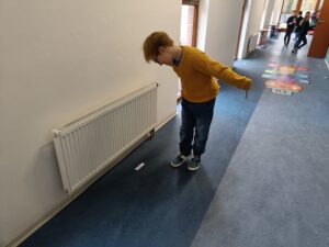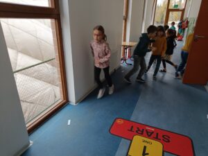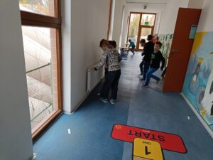 Děti učení baví, ale nejlepší je, když se u toho můžeme i trochu hýbat nebo hrát hry. V matematice je to třeba matematický počtář ve dvojicích nebo kombinace paměti, zápisu a výpočtu, kdy děti běhají na chodbu, musí si zapamatovat příklad, zapsat ho do správného sloupečku do sešitu a vypočítat. Odměnou za správně vypočítané příklady jsou body do soutěže. 🙂