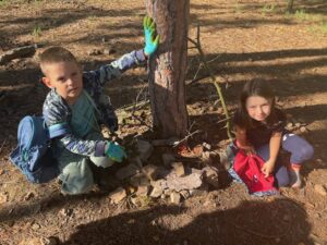 Ukliďme Česko V rámci akce Ukliďme Česko děti uklidily lesík nad školou. A po práci si postavily domečky pro skřítky.
