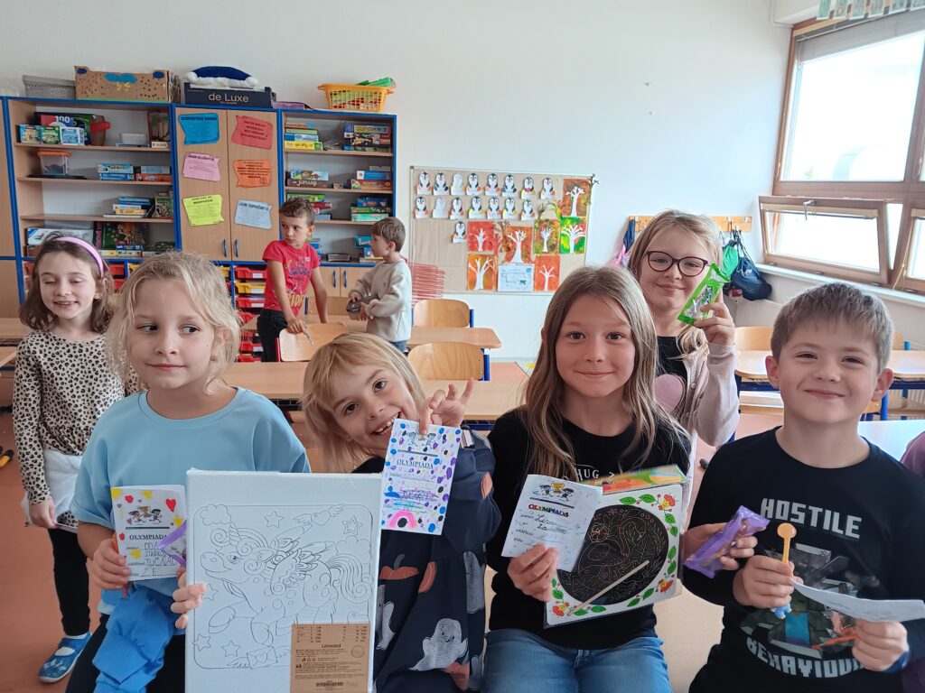 Minulý týden jsme ukončili Veselou podzimní olympiádu vyhlášením výsledků. Olympiáda probíhala v říjnu za příjemného počasí. Procvičili jsme si rychlost, přesnost a fyzickou zdatnost. Odměny si vybraly děti umístěné na prvních třech místech, ostatní za splnění všech disciplín dostaly drobnou sladkost.