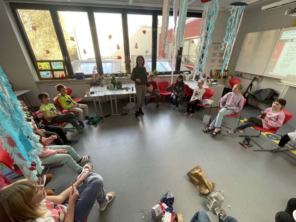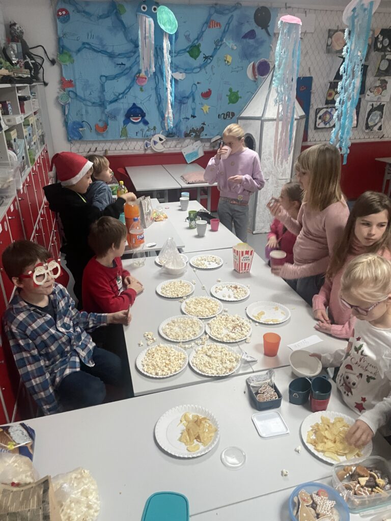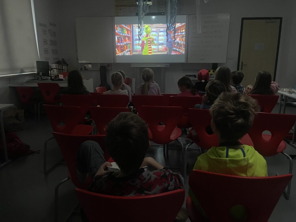 Poslední předvánoční týden jsme zakončili pohodovou třídní besídkou. Přinesli jsme si spoustu dobrot, které jsme spořádali při sledování pohádky Grinch. Poté jsme připravili vánoční nadílku a trochu jsme potrénovali naši trpělivost, protože jsme si před rozdáváním dárečků zazpívali koledy s kytarou a zahráli jsme si vánoční pantomimu. Pak už následovalo vzájemné nadělování dárků, šustění papíru a velká radost. 🙂