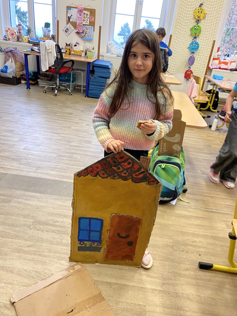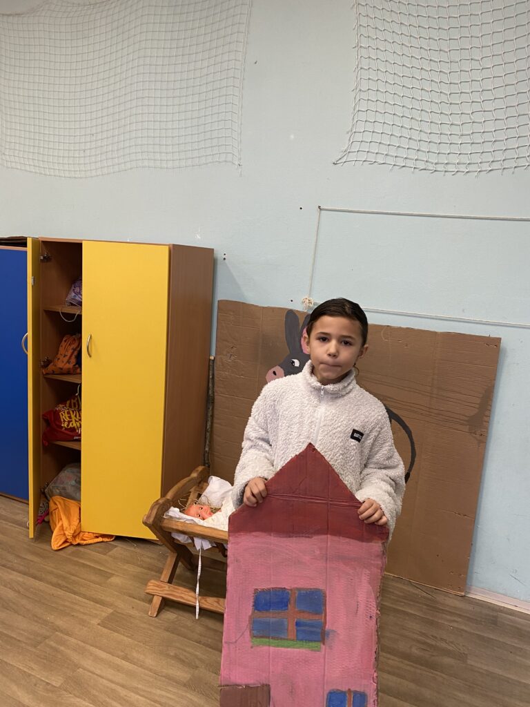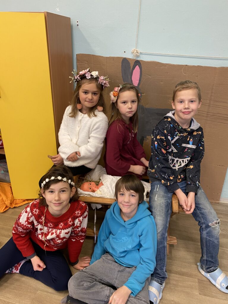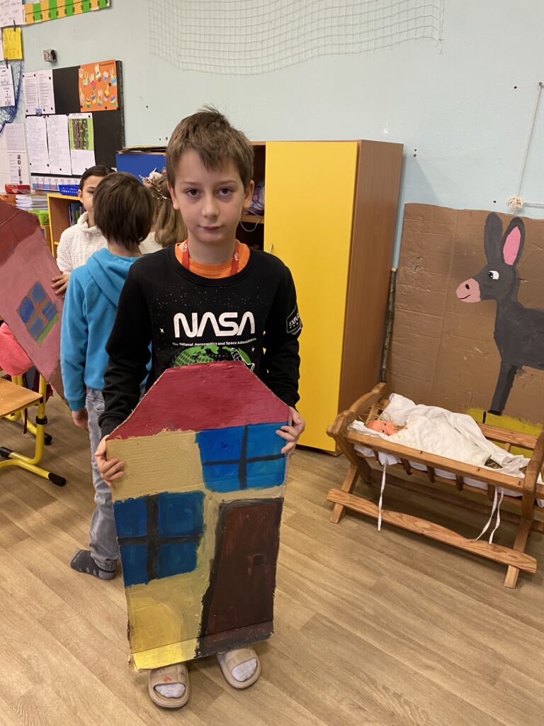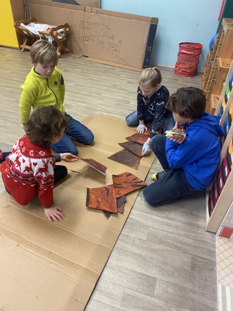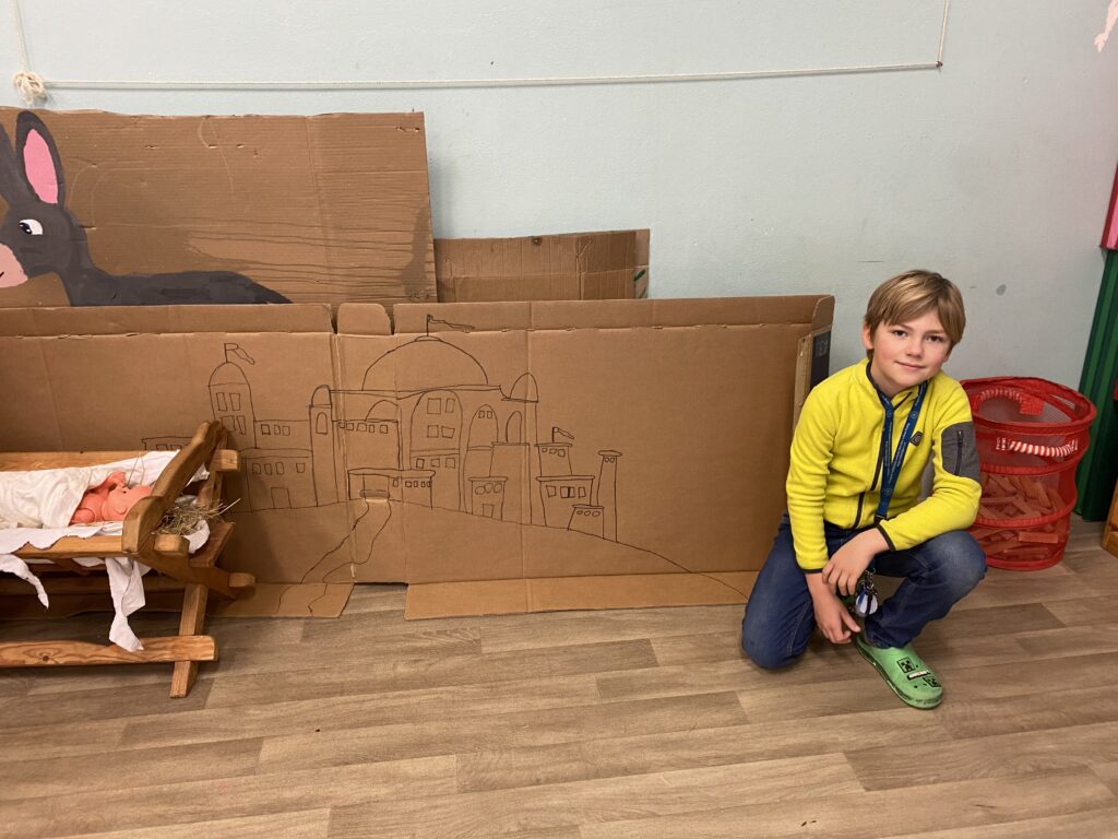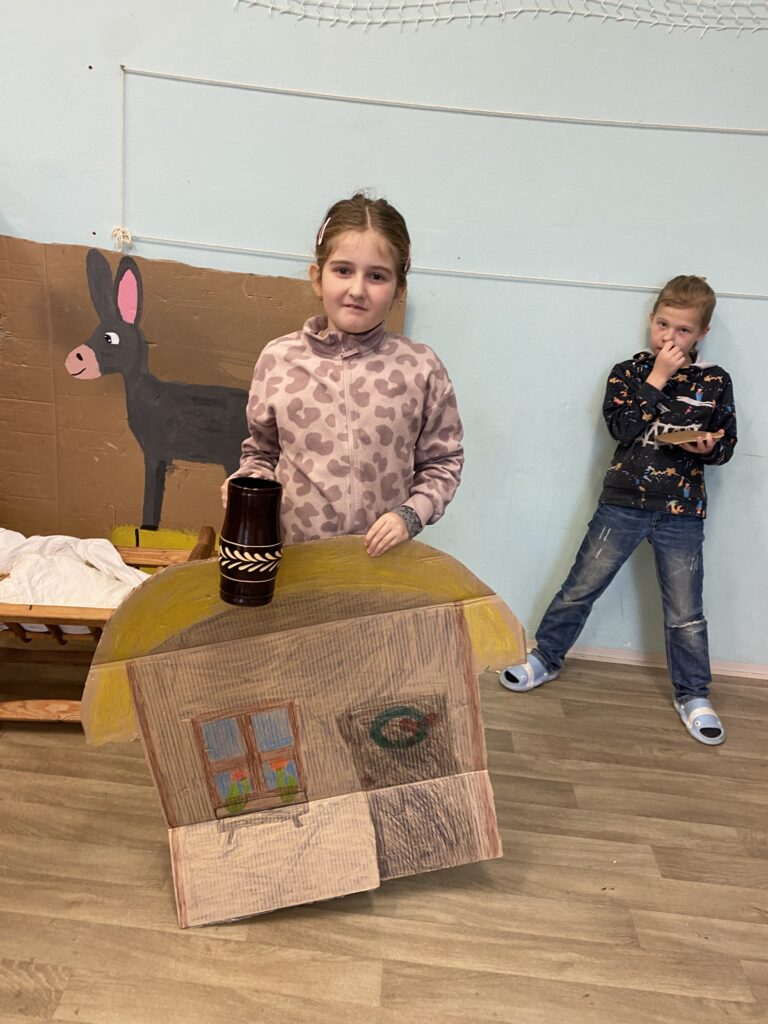 S našimi dětmi jsme vytvořili krásné kulisy na vánoční divadelní hru, kterou již s paní učitelkou pilně nacvičují.