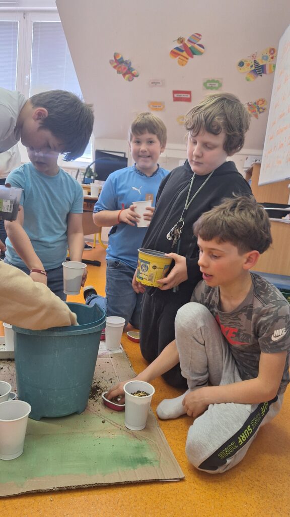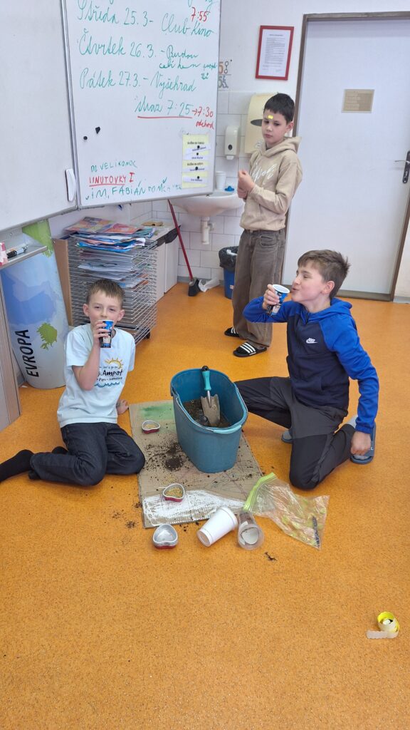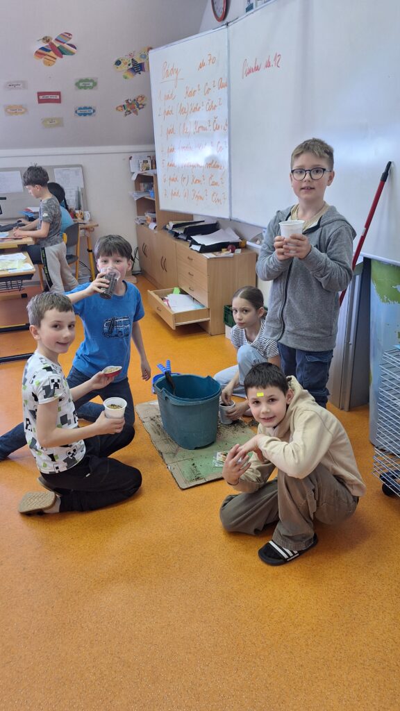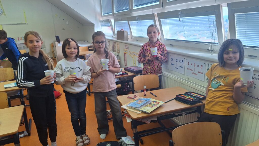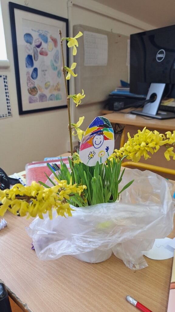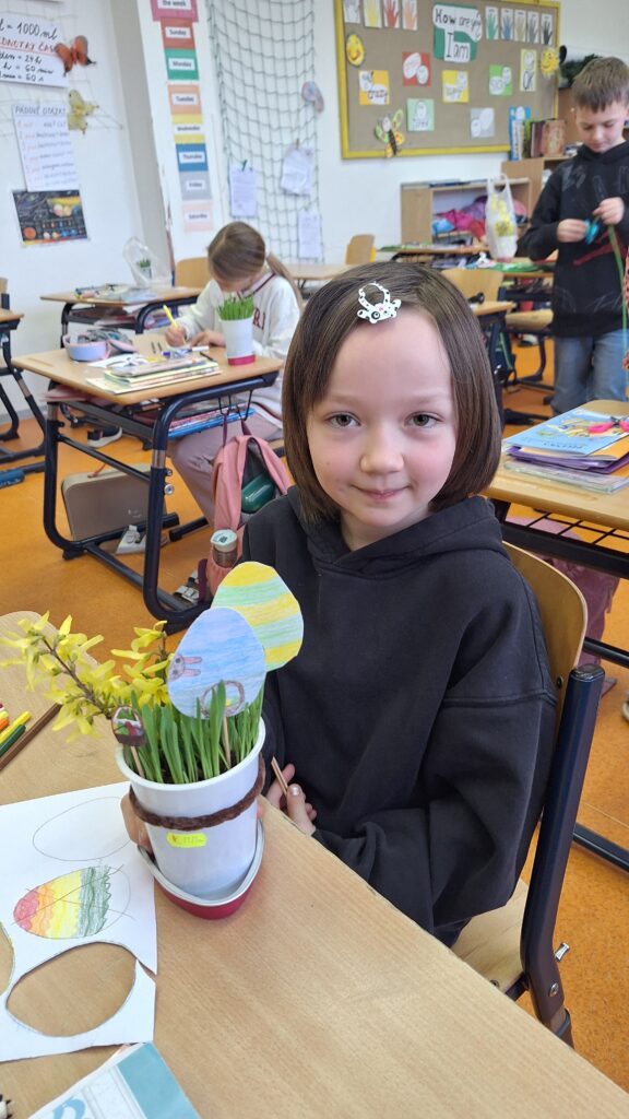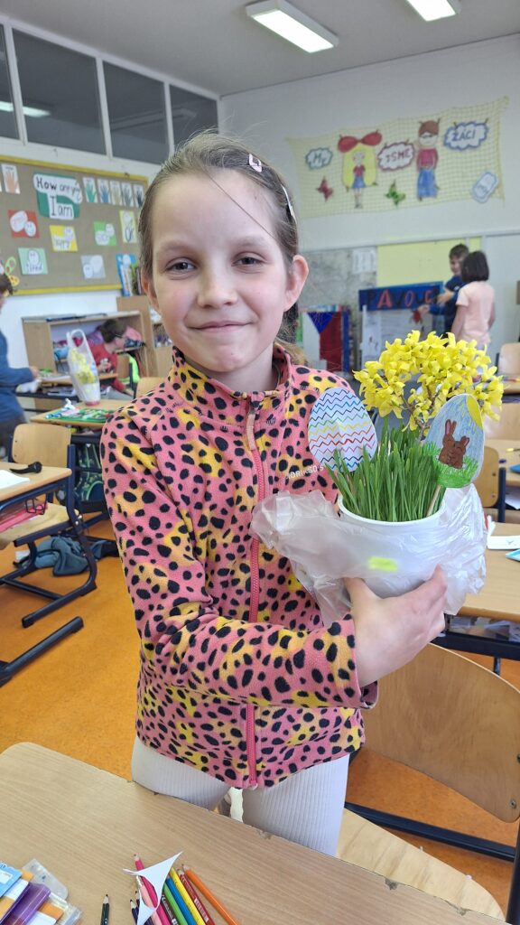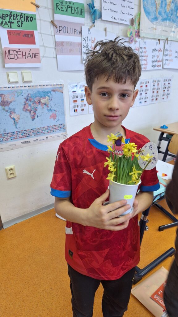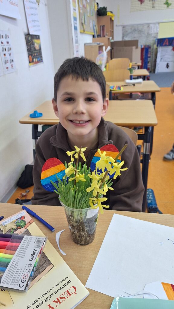 Děti si zasadily osení, o které se pravidelně staraly a zalévaly. Jakmile vyrostlo, krásně si ho nazdobily malovanými vajíčky a odnesly na výzdobu domů. Společně jsme si také připomněli smysl Velikonoc a seznámili se s tradičními zvyky u nás i ve světě. Celý týden se nesl ve velikonoční atmosféře a děti si ho moc užily.
