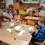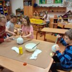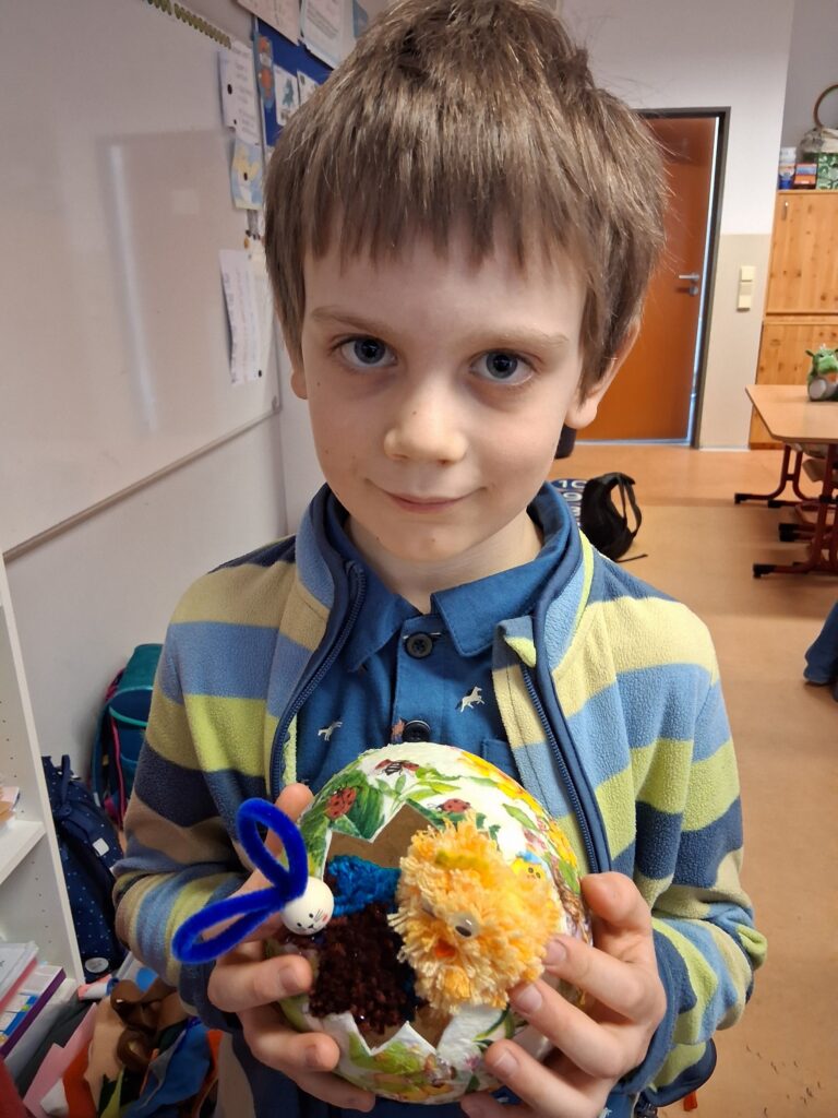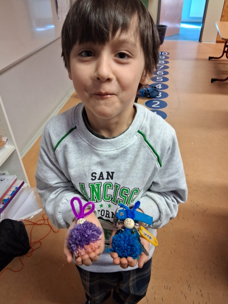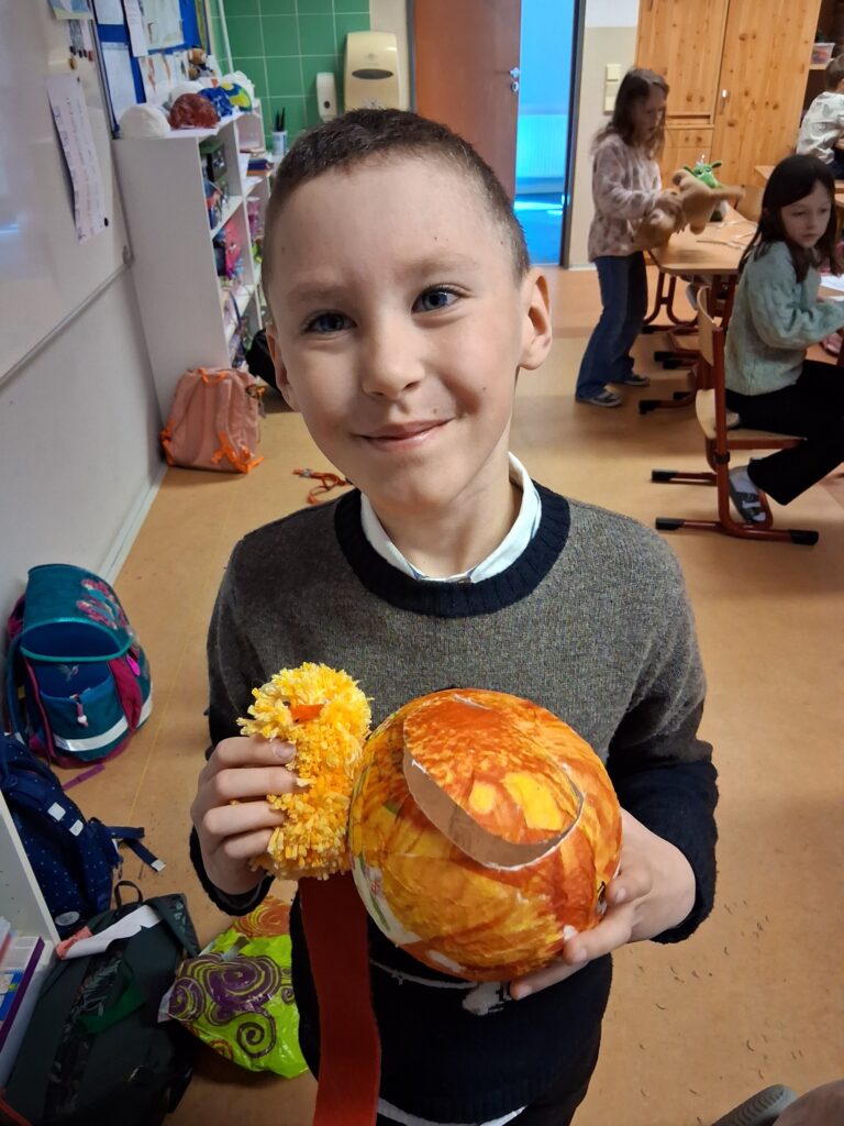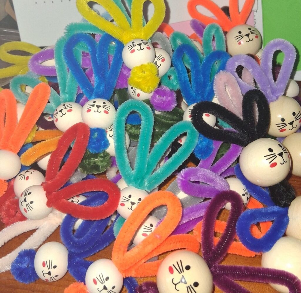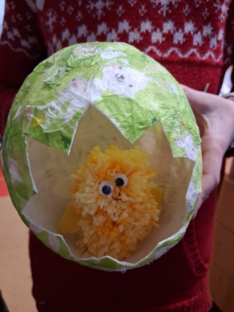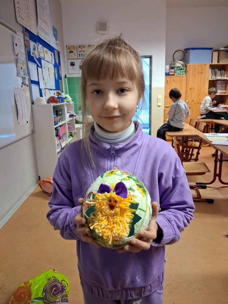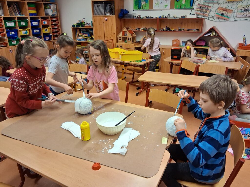 Ke konci března jsme se v Medvídcích věnovali velikonočnímu tvoření. Nejprve jsme se patlali v lepidle. Pomocí papírových utěrek, barevných ubrousků a nafouklého balonku jsme vytvořili postupně 15 originálních vajec. Aby nezůstala neobydlená, přišlo na řadu kuře z bambulek a filcu. Bambulkování se u nás opět rozjelo hlavně výrobou roztomilých králíčků Ušáčků. Celkem jsme jich vyrobili rekordních 60 kousků. Aby toho velikonočního tvoření nebylo málo, využili jsme zbytky látek na dekoraci polystyrenového vejce. Letos na Velikonoce držíme krásné prvenství v tvořivosti.