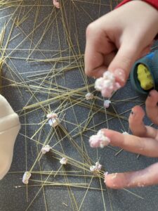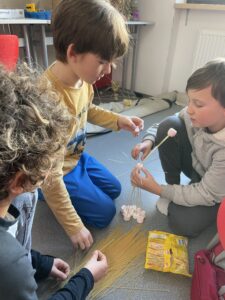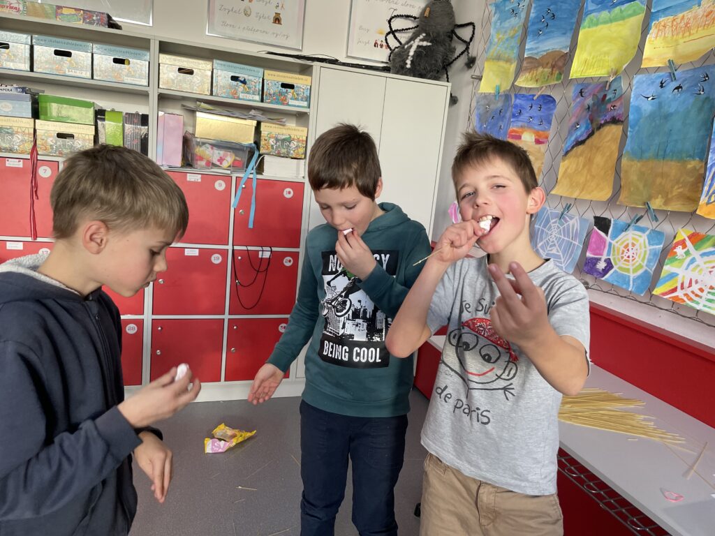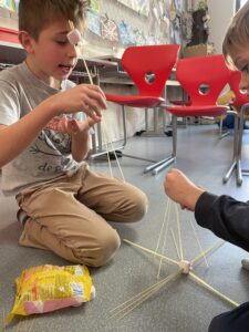 Dnes jsme si ve třídě vyzkoušeli netradiční aktivitu, která prověřila naši kreativitu, trpělivost a týmovou spolupráci. Úkolem bylo postavit co nejvyšší věž pouze z syrových špaget a marshmallownů. Na první pohled jednoduché, ale jak jsme brzy zjistili, špagety nejsou zrovna nejpevnější materiál!