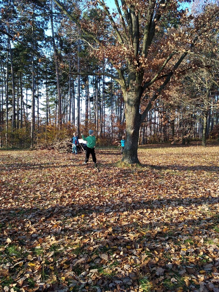 Jako každý pátek vycházka, tentokrát nám vyšlo nádherné počasí. Děti si užily běhání, schovávání, lezení a veselého dětského bojování. Bylo to nádherné odpoledne!