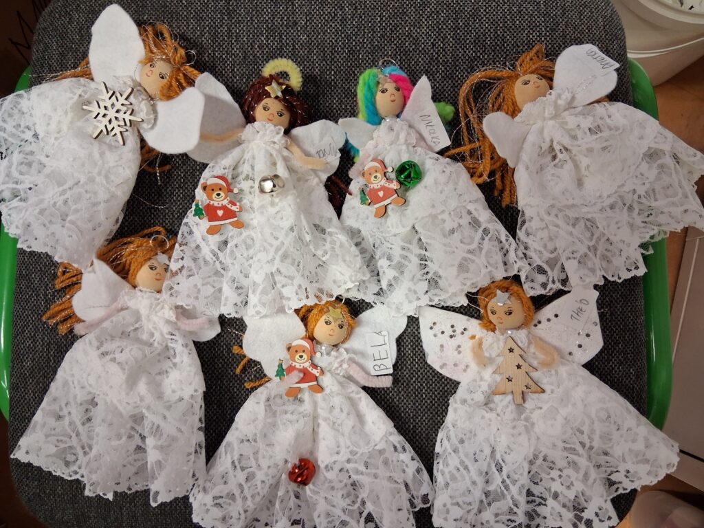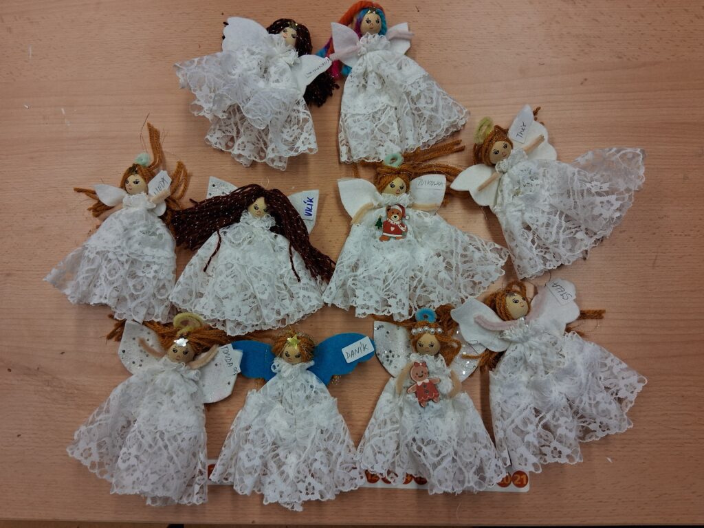 Výroba dekorací na Mikulášské trhy probíhala v našem oddělení v minulých čtrnácti dnech. Téměř všechny děti se zapojily do výroby ozdob na stromeček. Děti, které vyrábět nechtěly, jsem nenutila. I tak máme spoustu povedených třpytivých věnečků a krajkových andílků. Podívejte se do galerie. Děti vám jistě poví, jaké vyráběly.