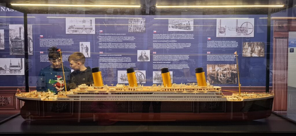 V pátek 12. 12. jsme navštívili výstavu Titanic v PVA EXPO Praha Letňany. Velkolepé prostory výstavy nás vtáhly do atmosféry legendárního parníku, který se v roce 1912 potopil ke dnu Atlantiku. Během prohlídky jsme se seznámili s mnoha historickými i technickými zajímavostmi a mohli jsme si projít věrné repliky kajut, francouzské kavárny, salónků i části strojovny lodi. Součástí expozice bylo také velké množství autentických exponátů vyzdvižených z oceánského dna – porcelán, nábytek, dlaždičky, osobní předměty cestujících, šperky, boty, kabelky, parfémy i oblečení. Kdo chtěl, mohl si osahat mrazivý ledovec. Nechyběly ani osobní příběhy pasažérů. Silným emocionálním zážitkem bylo, že žáci na začátku prohlídky obdrželi lodní lístek s identitou jednoho cestujícího – na kartičce bylo uvedeno jméno, věk, třída, ve které cestoval/a, a důvod plavby do Ameriky. Během prohlídky pak žáci zjišťovali, zda jejich osoba katastrofu přežila, či nikoli. Výstavu jsme si velmi užili a celkový dojem nám nezkalila ani porouchaná výhybka mezi Hlavním a Smíchovským nádražím, která zpáteční cestu ke škole prodloužila téměř o hodinu a půl.