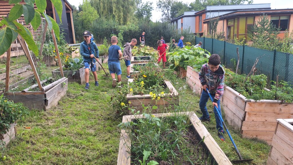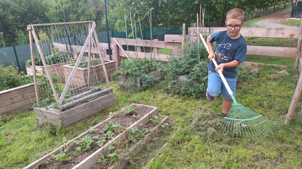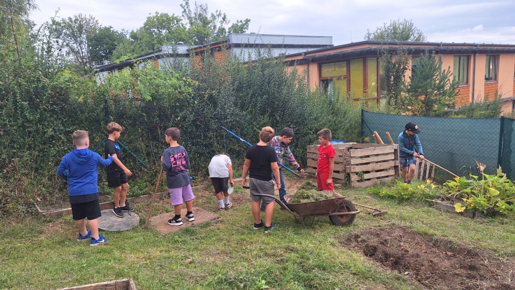 Děti se společně staraly o naše školní zvířátka – s nadšením hrabaly trávu, pomáhaly při sušení sena a připravily zásobu krmení na pozdější období. Děti se tak učí nejen spolupráci mezi kamarády, ale i zodpovědnosti za živá zvířátka.