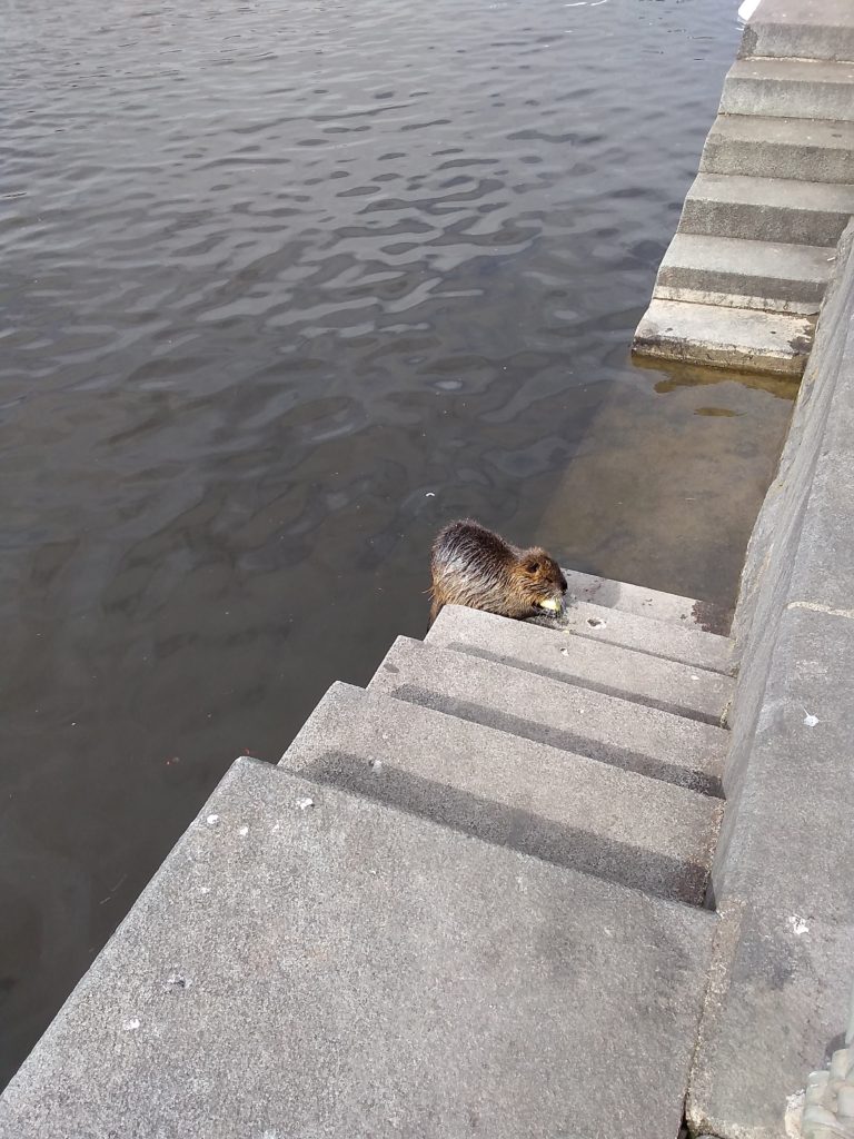 ZAJÍMAVOST Z PRAHY Při cestě z Karlova náměstí na Smíchovské nádraží jsem se zastavila u Vltavy. Překvapila mě nutríe krmící se nakrájenými jablíčky a blízkost labutí. Ráda se o tyto fotky s Vámi podělím. Míša Velichová