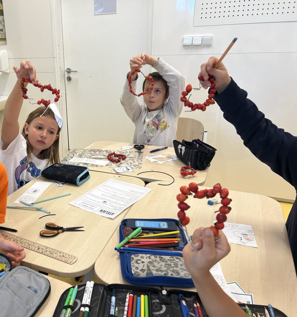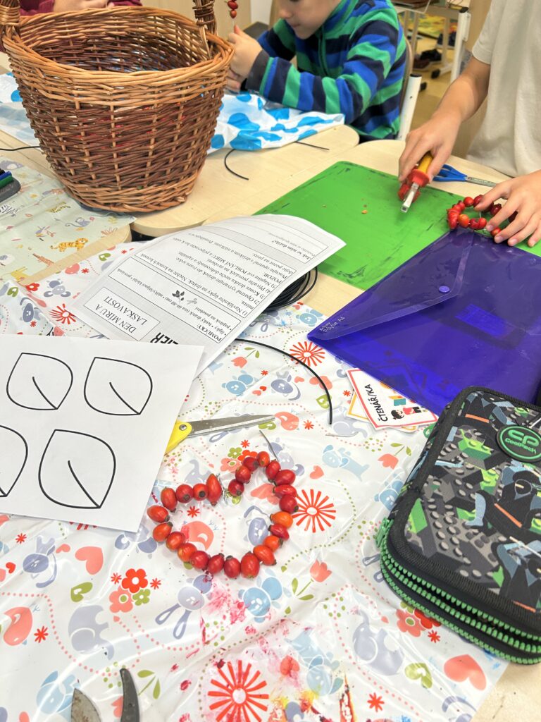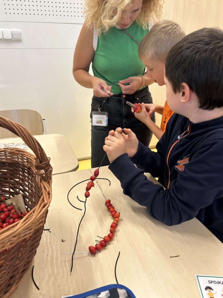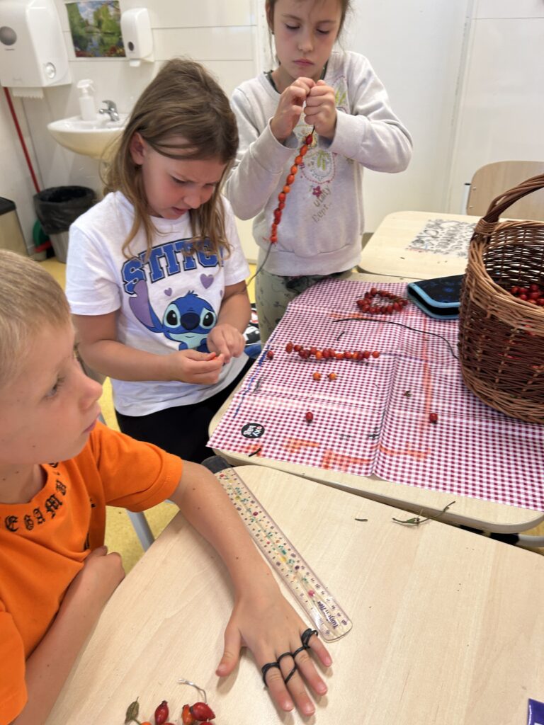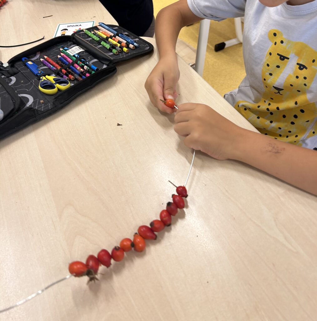 V průběhu září probíhala výuka formou center aktivit na téma Den míru a laskavosti. Děti se do tématu zapojily s velkým zájmem, přemýšlely o významu míru ve světě i o tom, jak může laskavost zlepšit vztahy ve třídě. V rámci tvořivých činností vzniklo srdíčko ze šípků s mírovým vzkazem a připravili jsme si i zdravý šípkový čaj plný vitamínů.