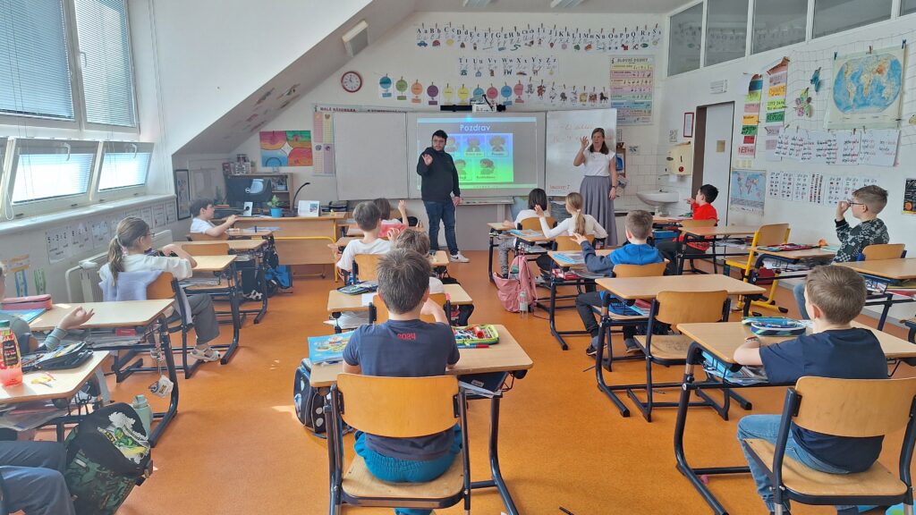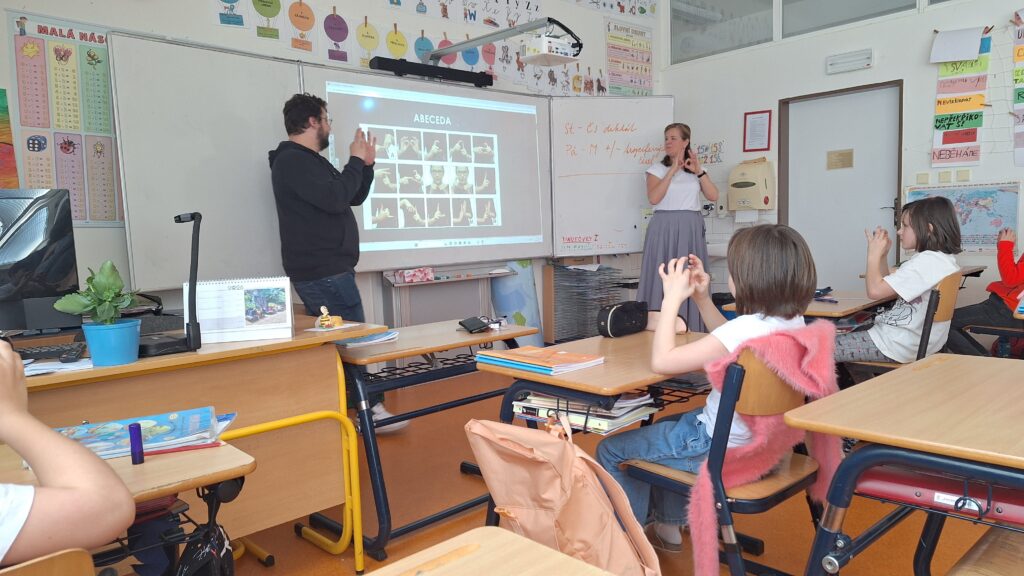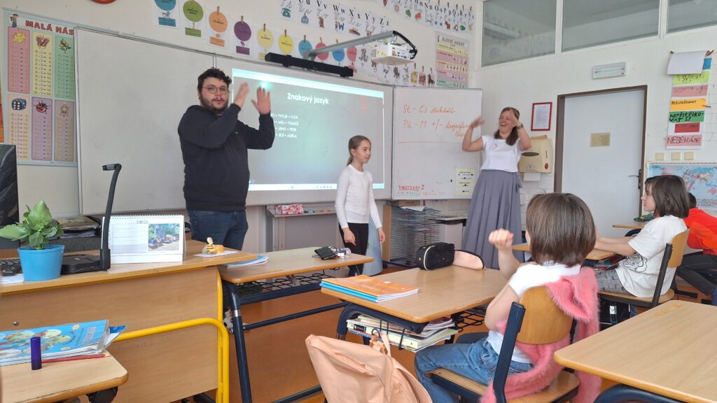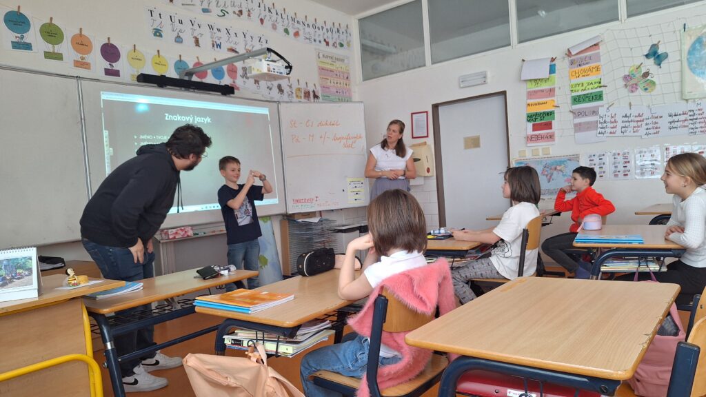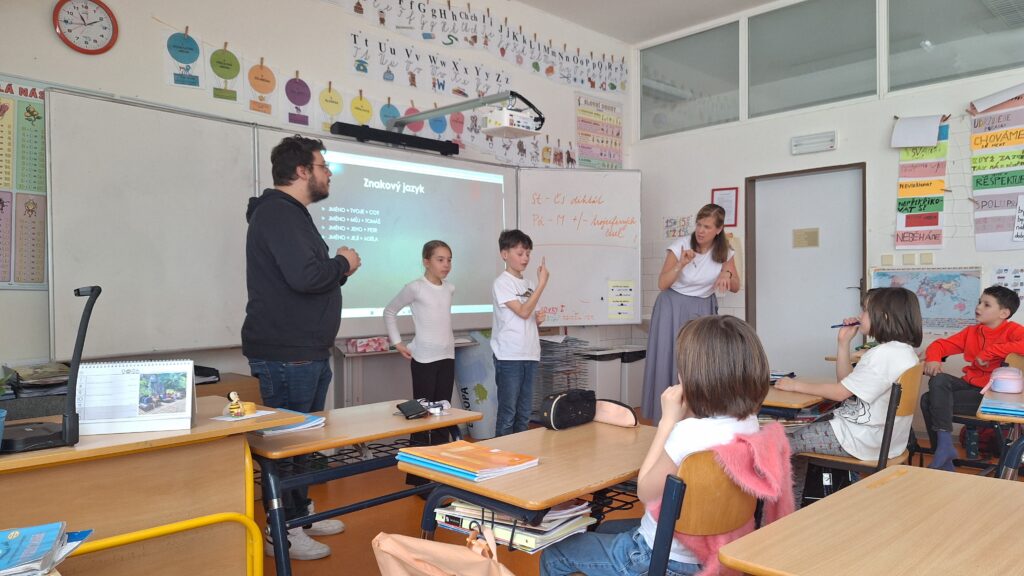 znakovou řeč. Seznámili se se základními znaky, naučili se jednoduchá slova i pozdravy a zjistili, jak lidé se sluchovým postižením komunikují. Aktivita byla pro děti velmi zajímavá a přínosná, protože si uvědomily důležitost vzájemného porozumění lidí mezi sebou.